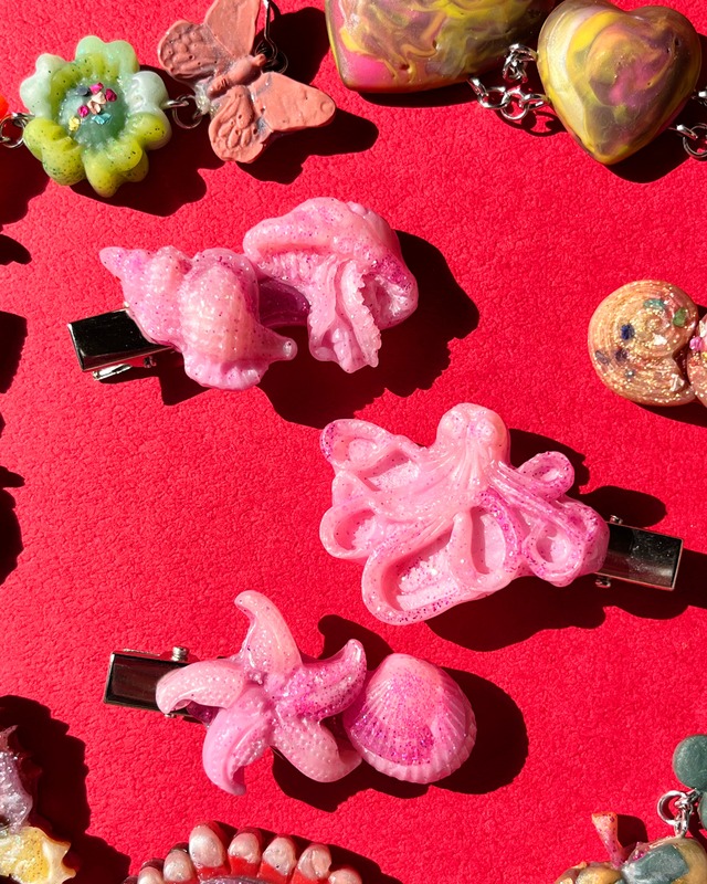 カラフルな貝とヒトデモチーフがユニーク&かわいいヘアピンセットです。 ヘアピン本体の長さ4cm