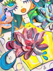 裏面にマグネットが付いているので冷蔵庫などの飾りに⋆。˚✩