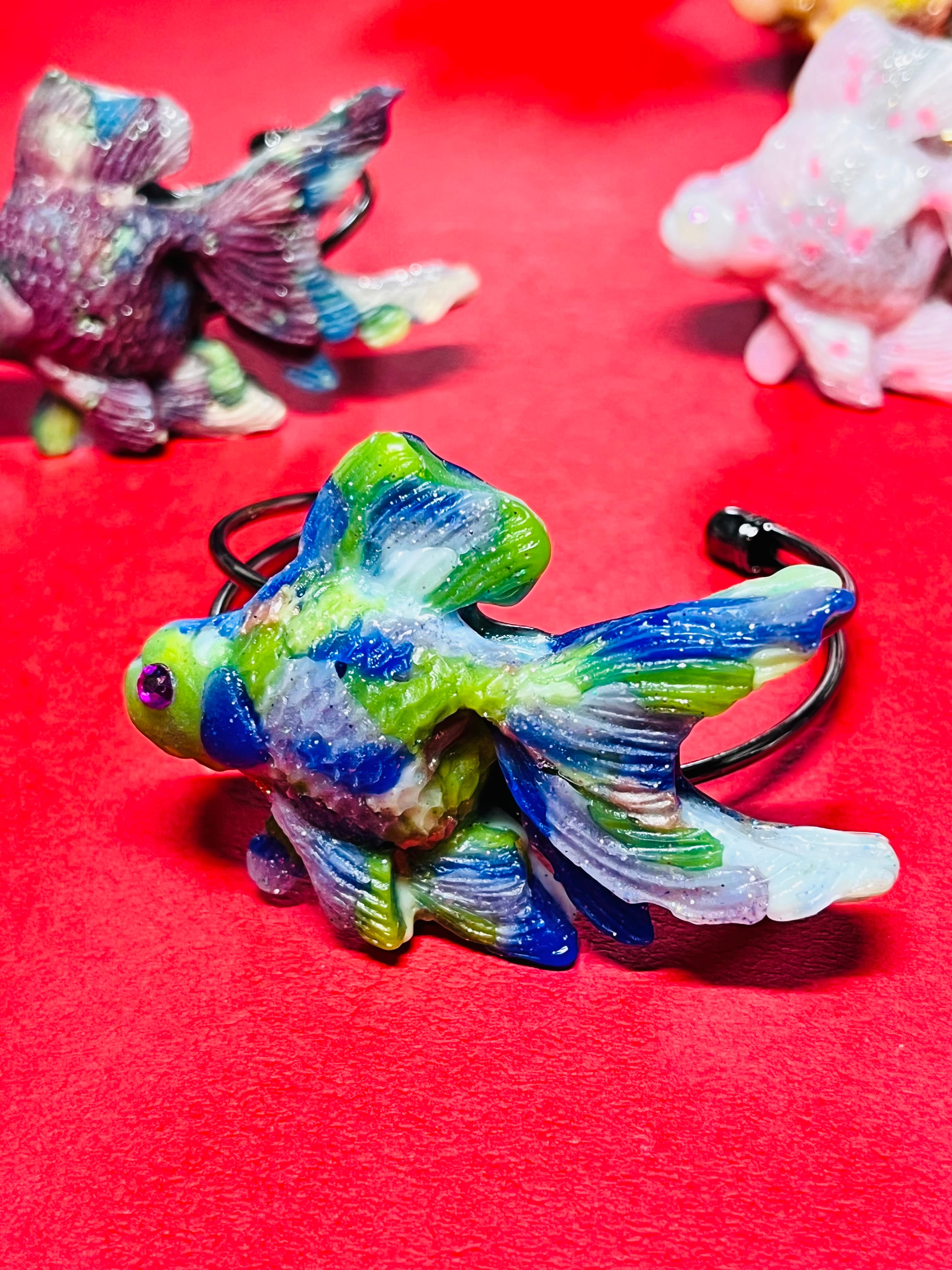 蓄光パーツを使った金魚のバングル