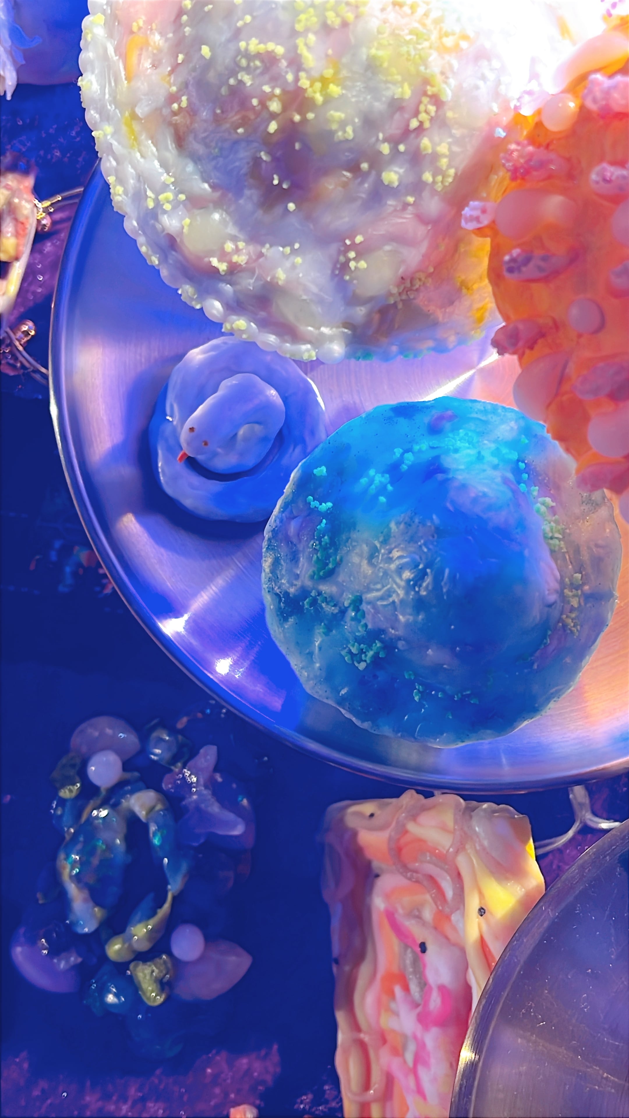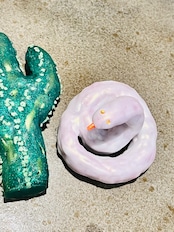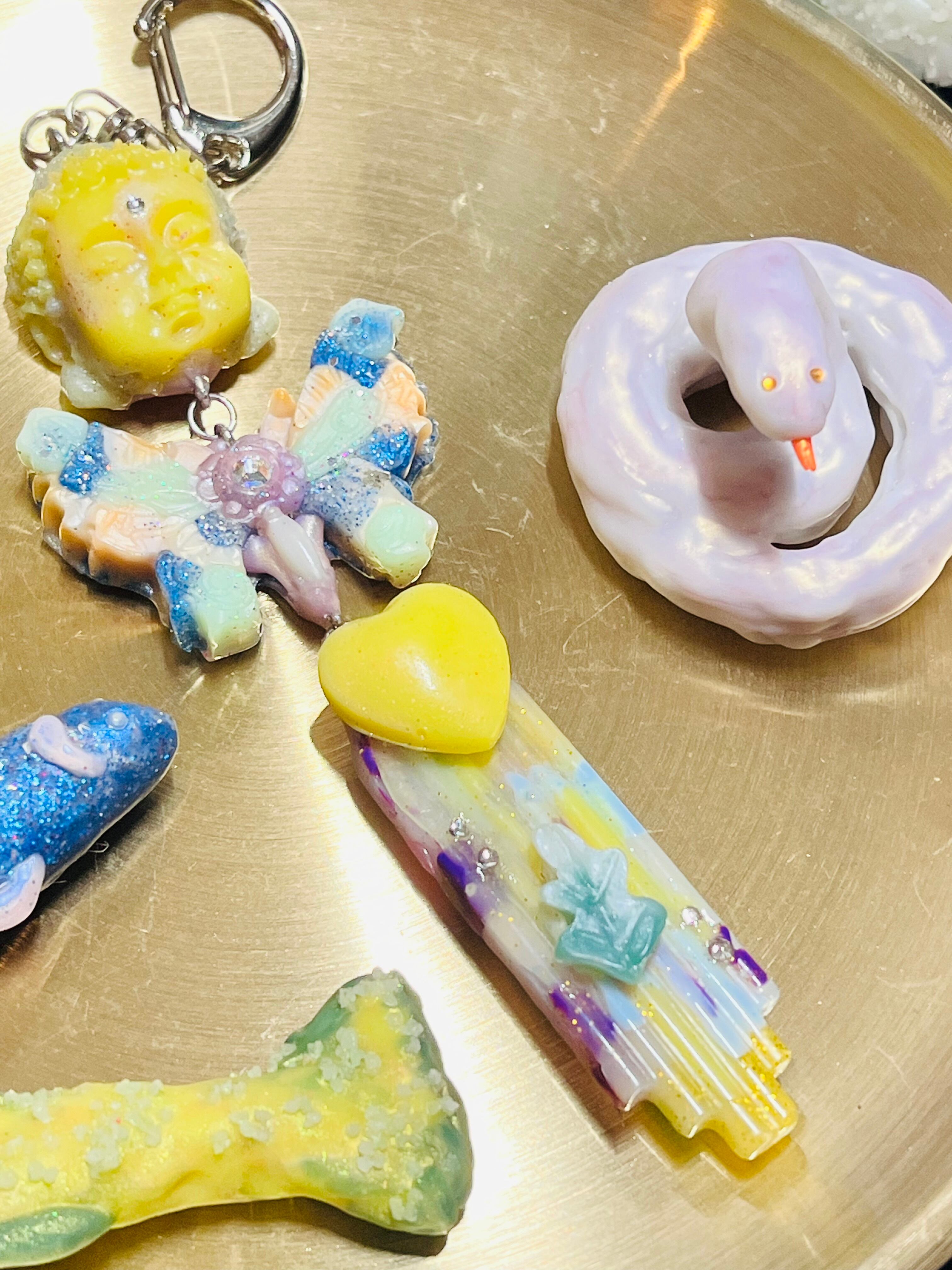 どちらも所々オーロラっぽい光沢のあるカラーに仕上げました。ちいさいけれど細部までこだわって作った一点物です。