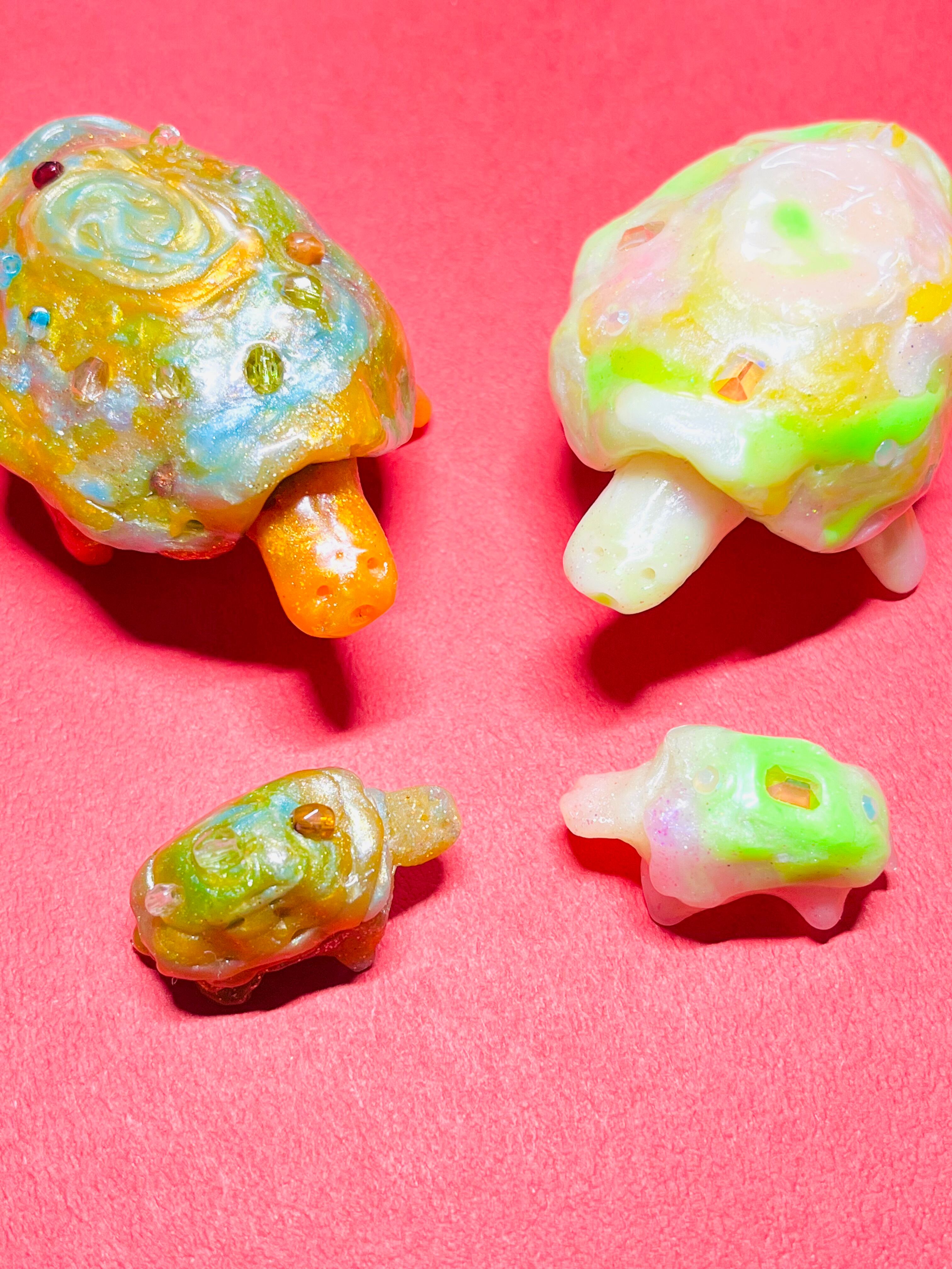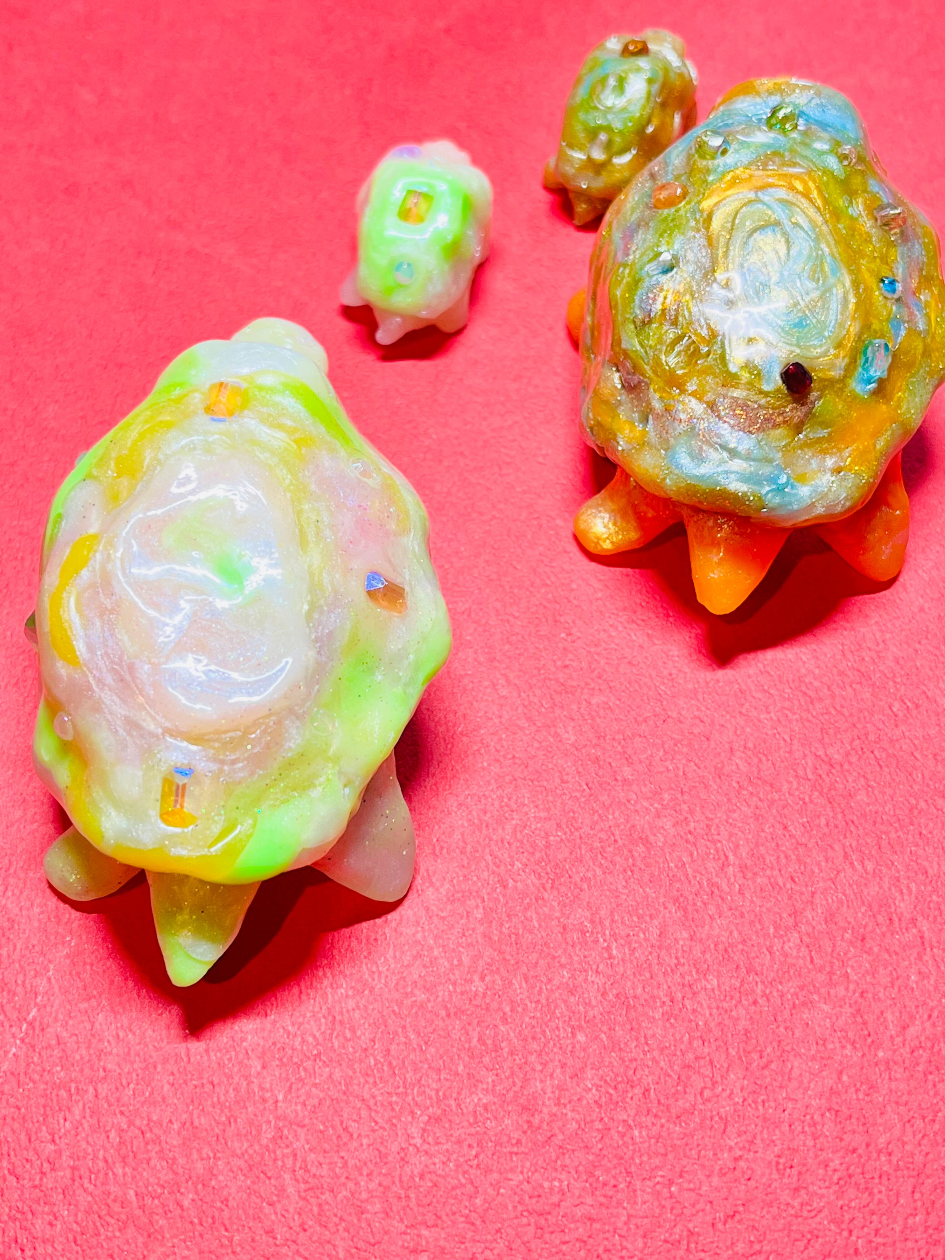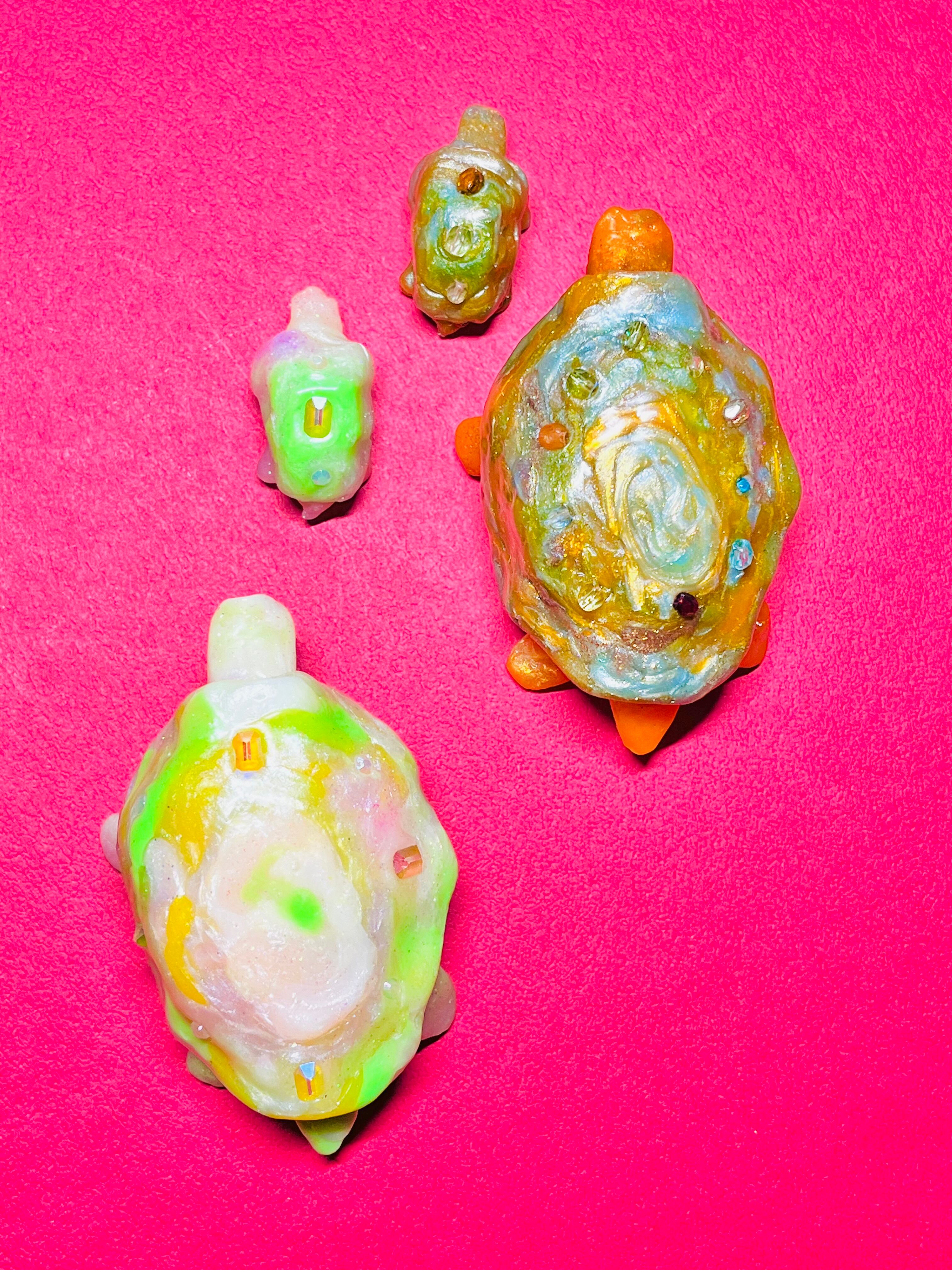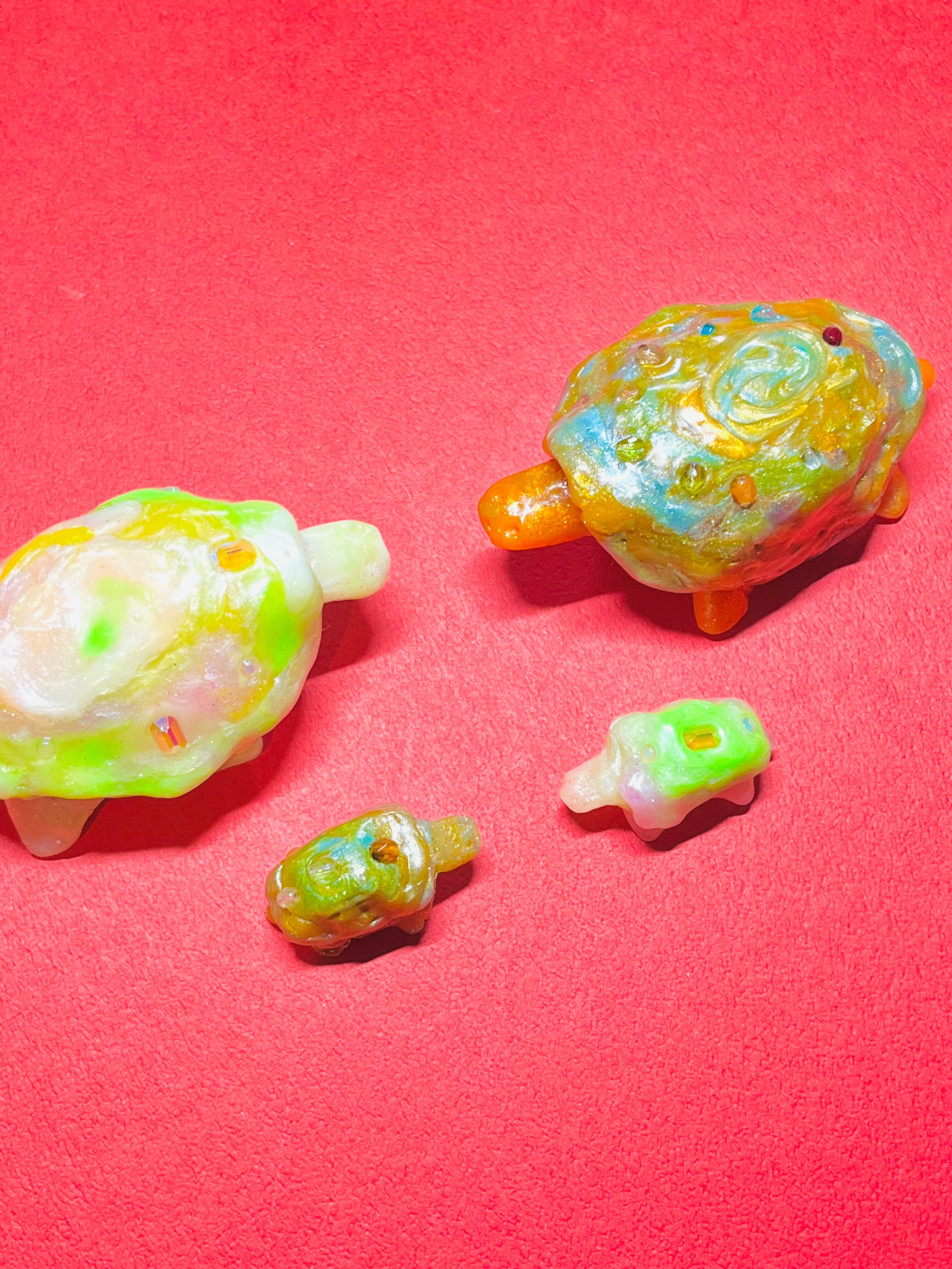 甲羅に宝石が付いている亀の親子