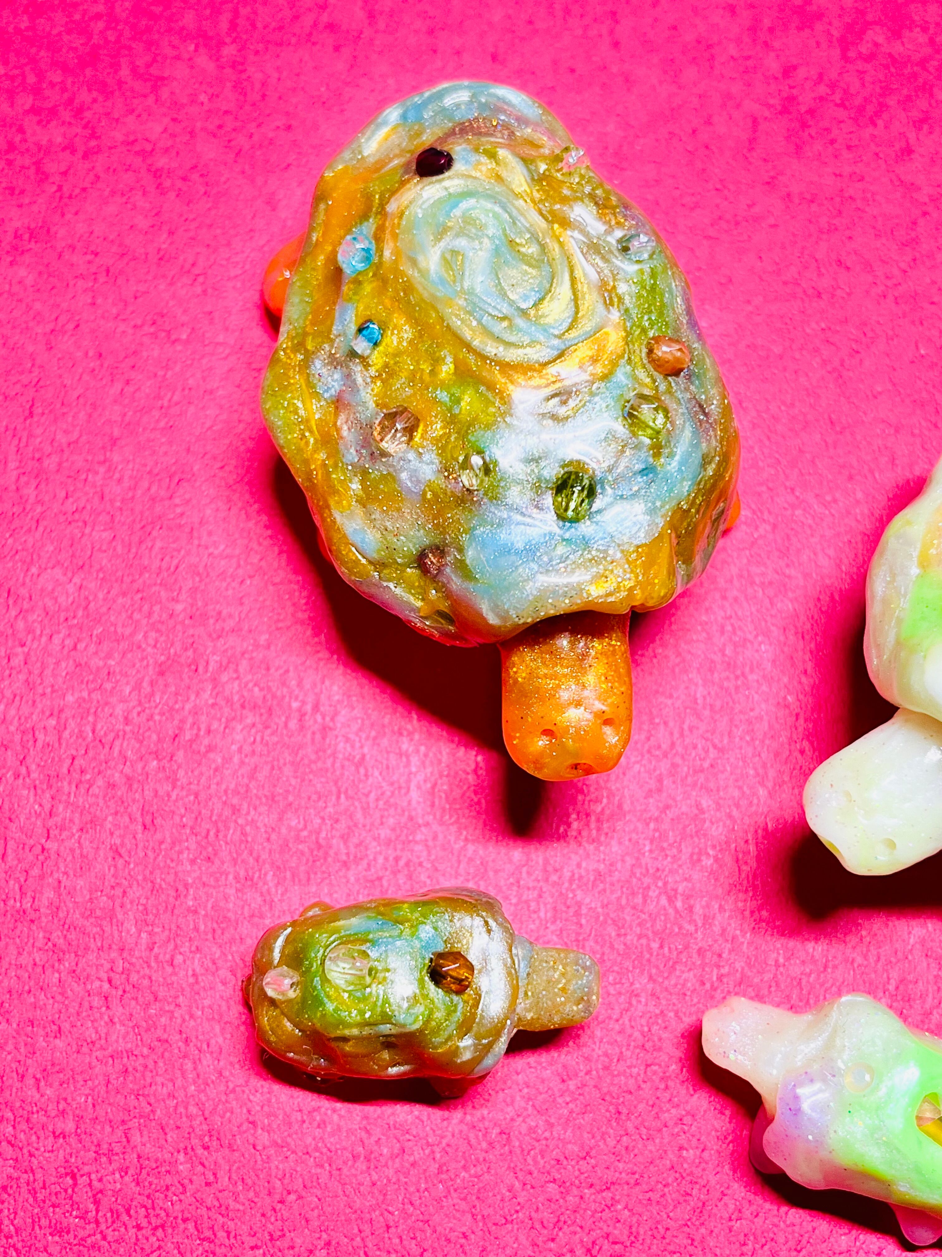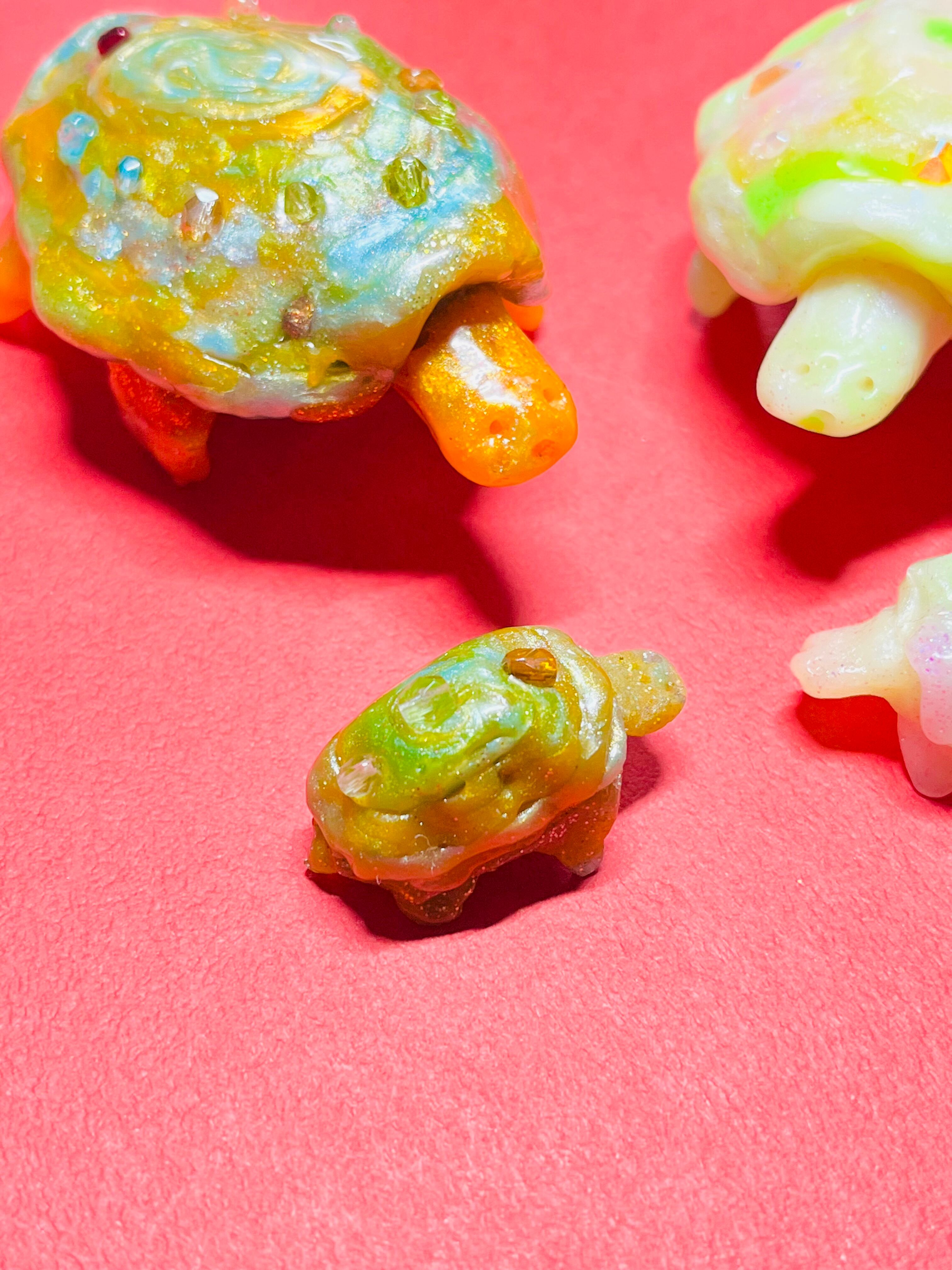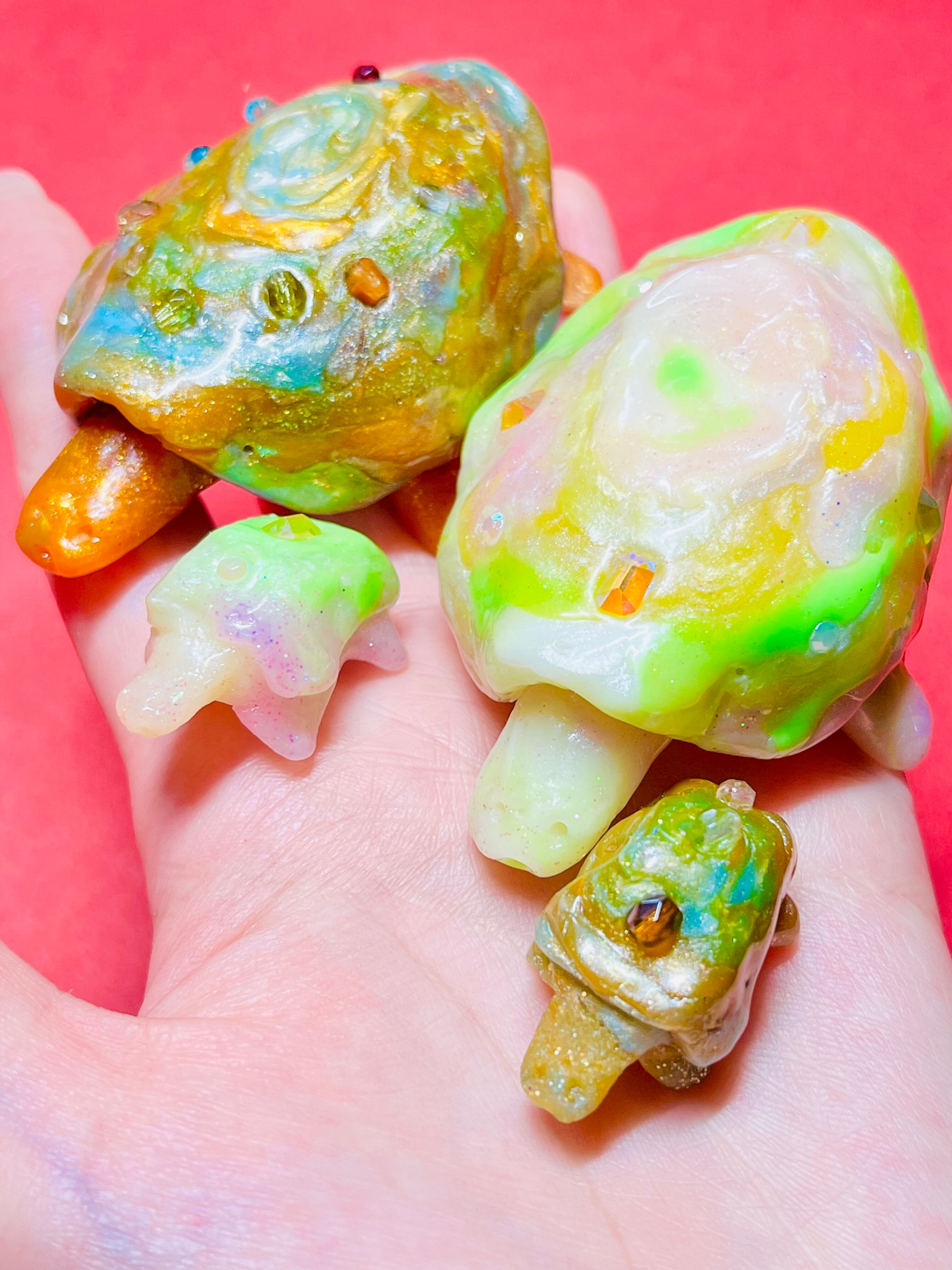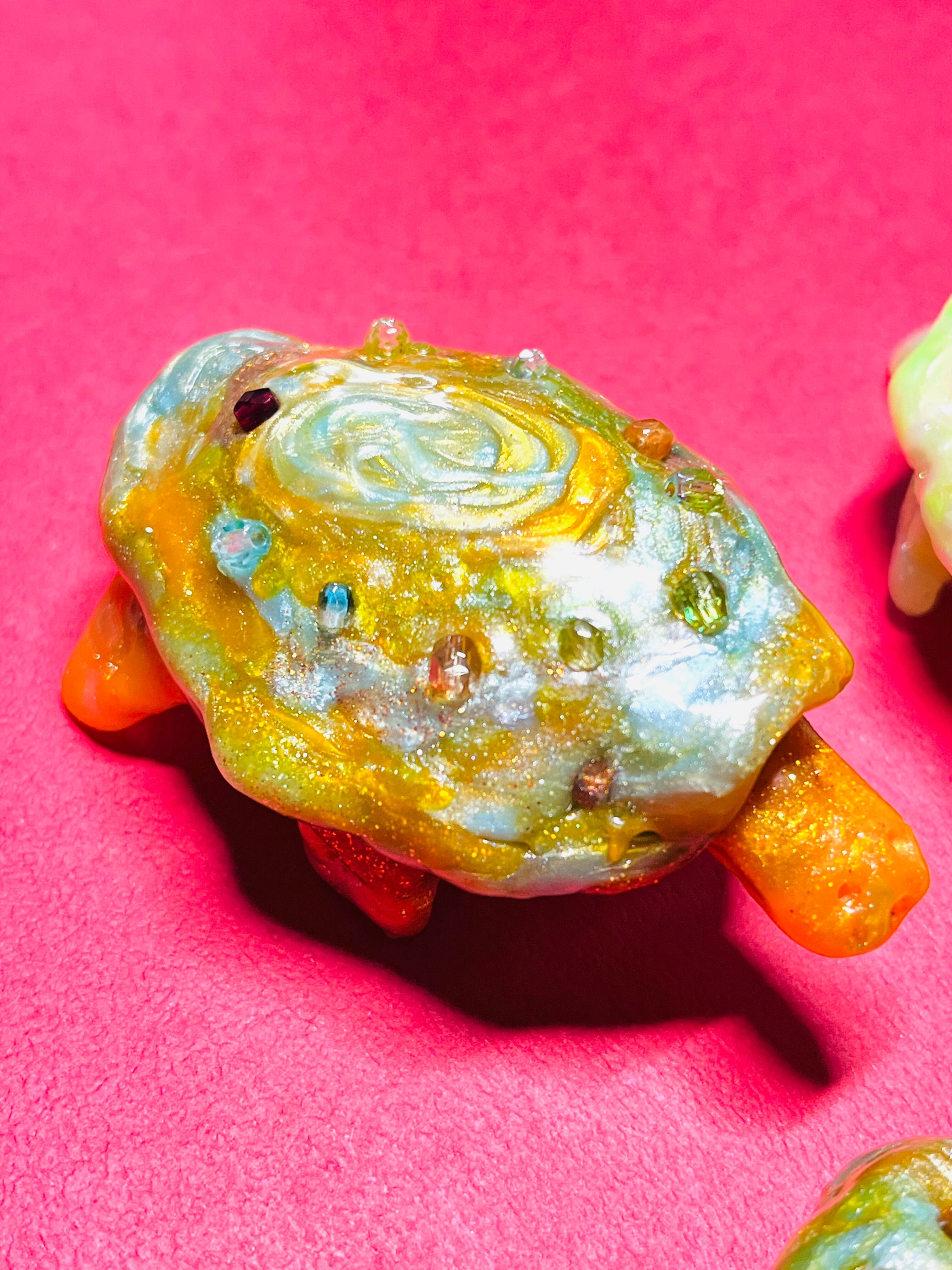甲羅に宝石が付いている亀の親子