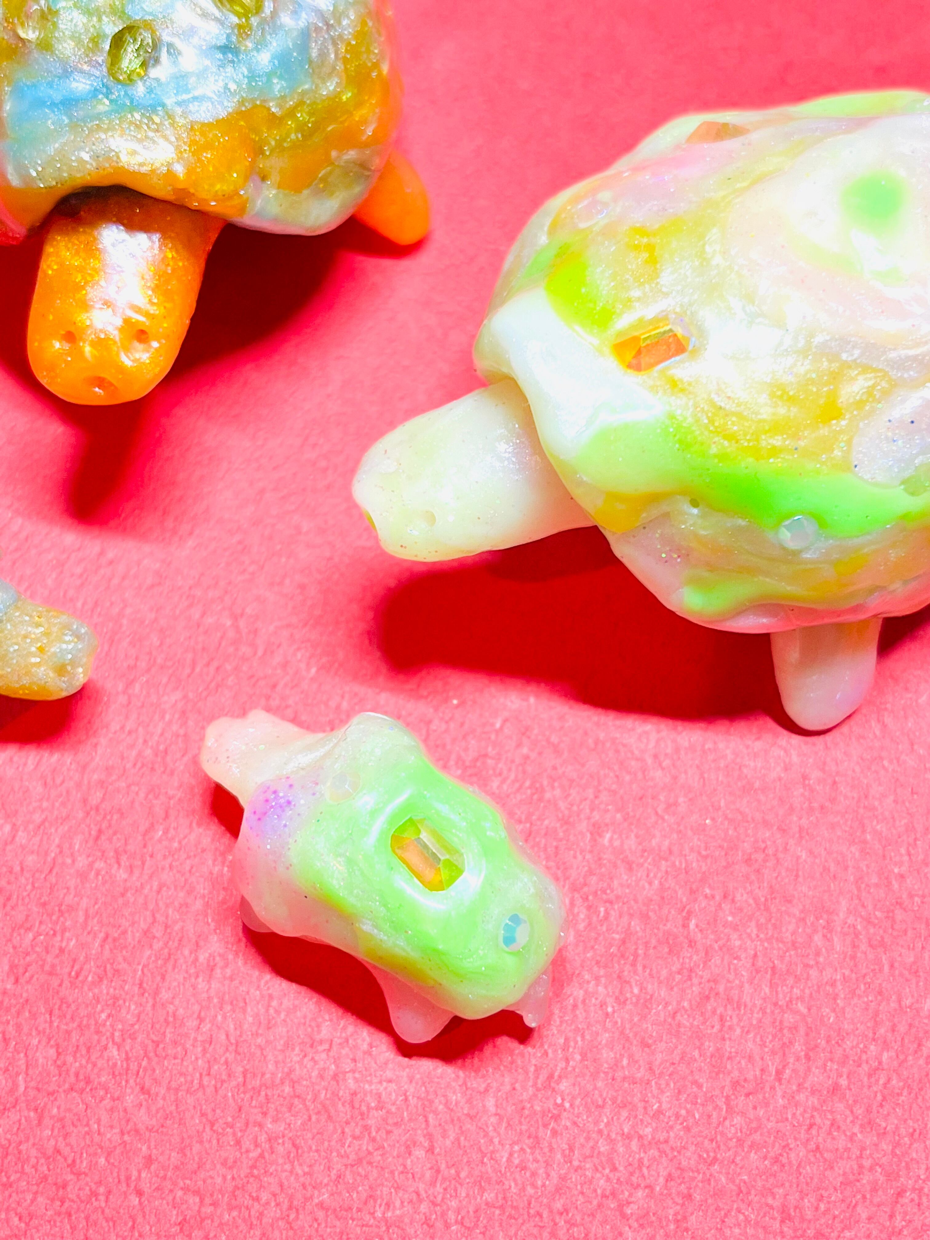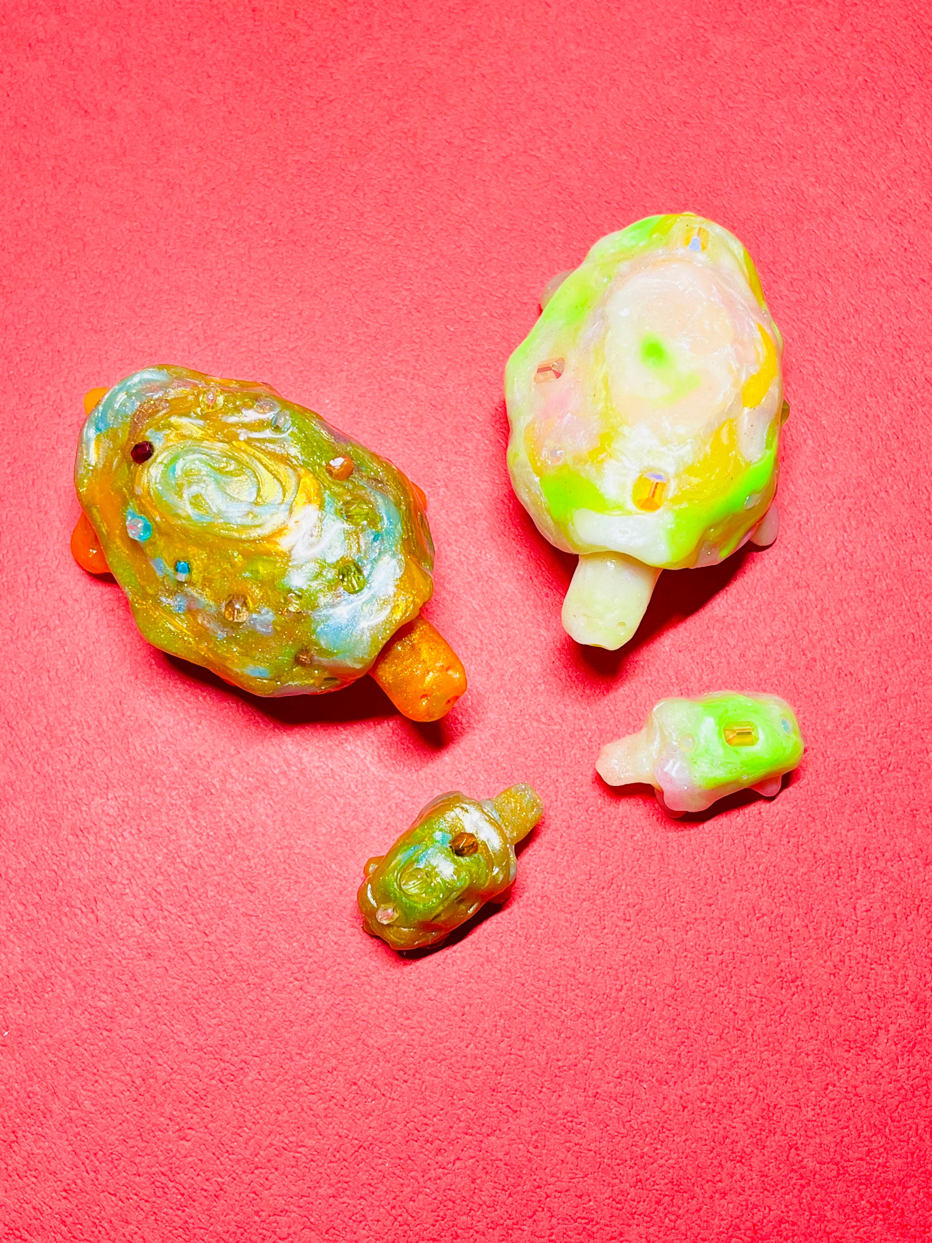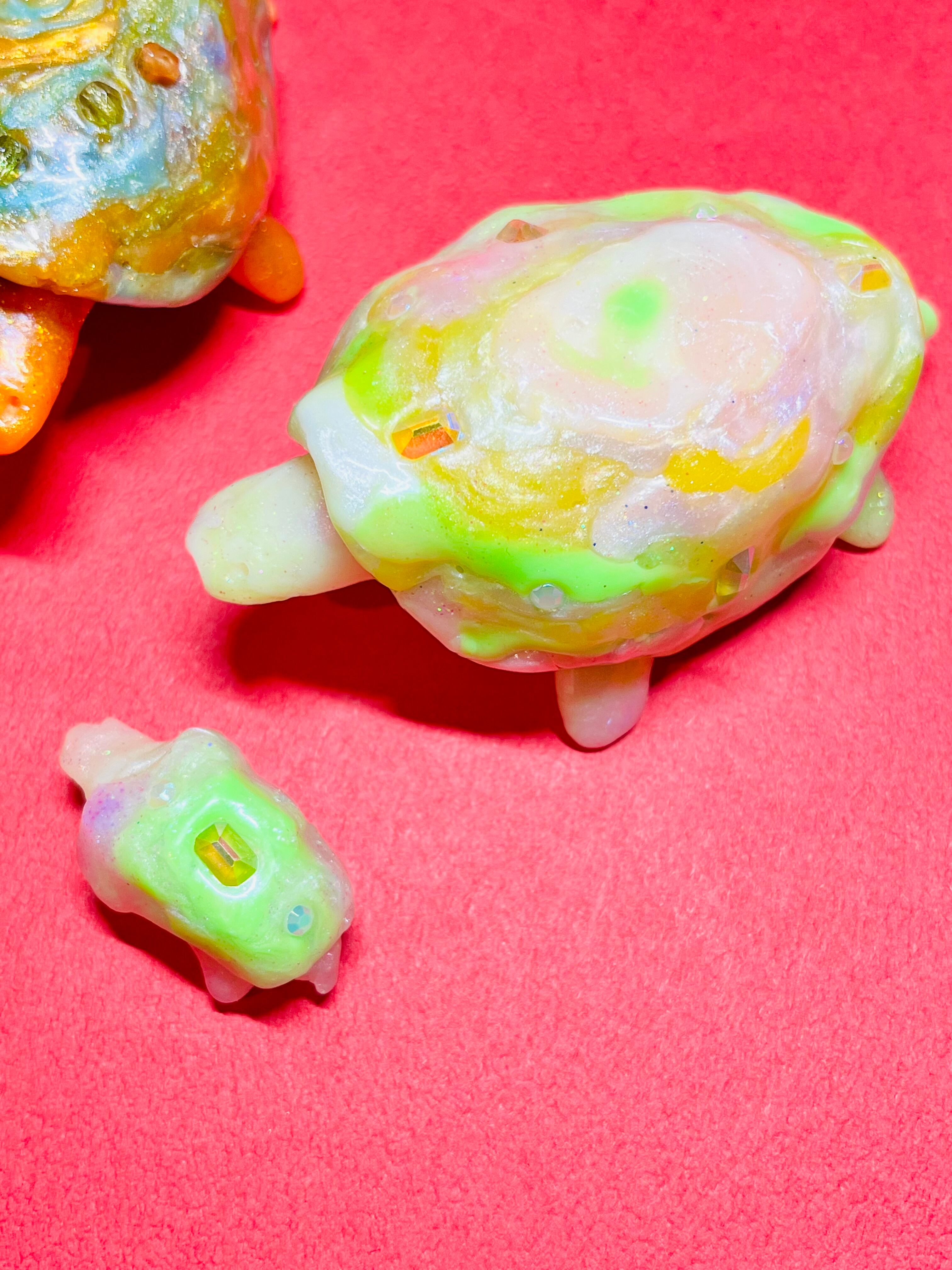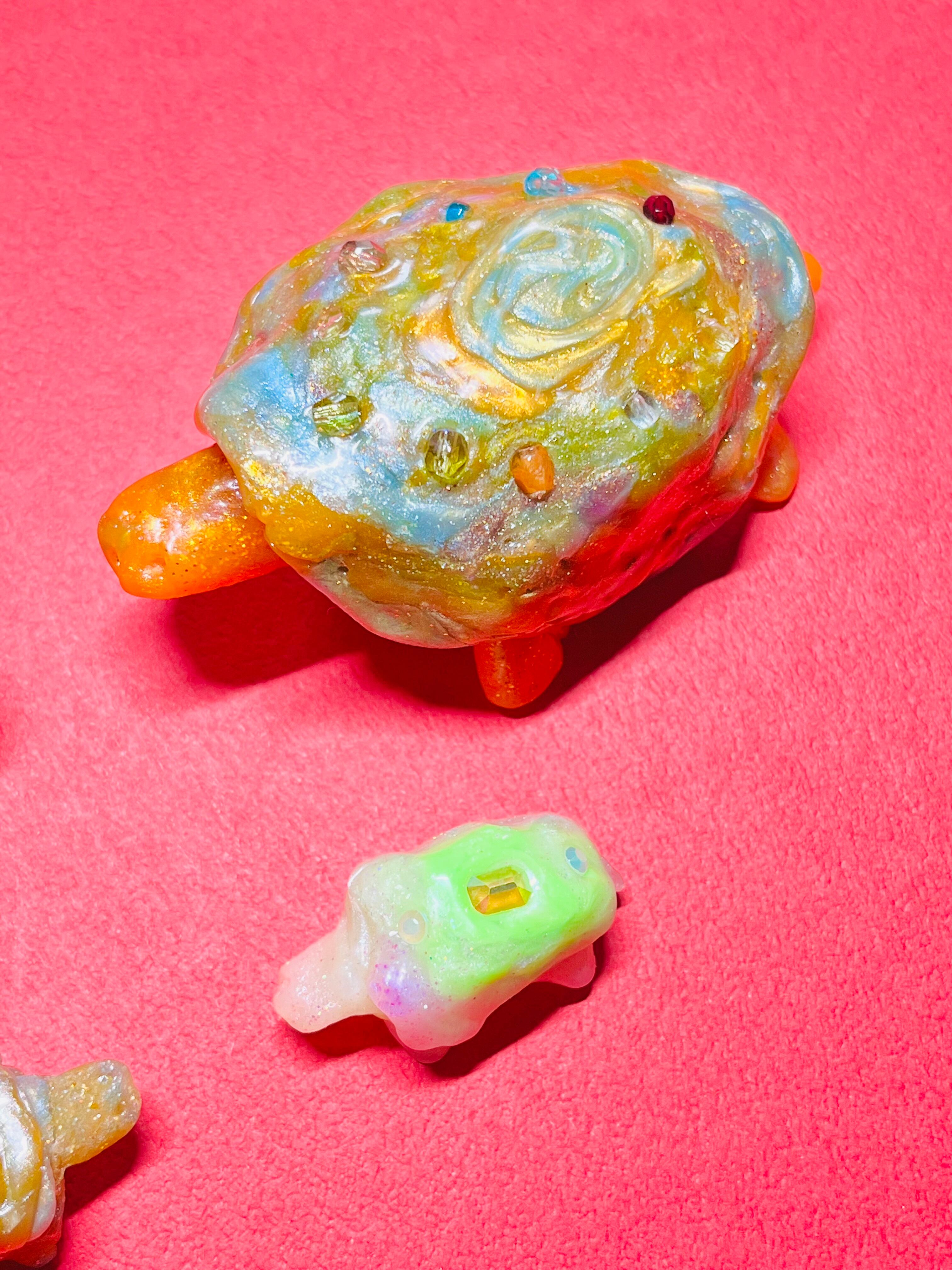 甲羅に宝石が付いている亀の親子