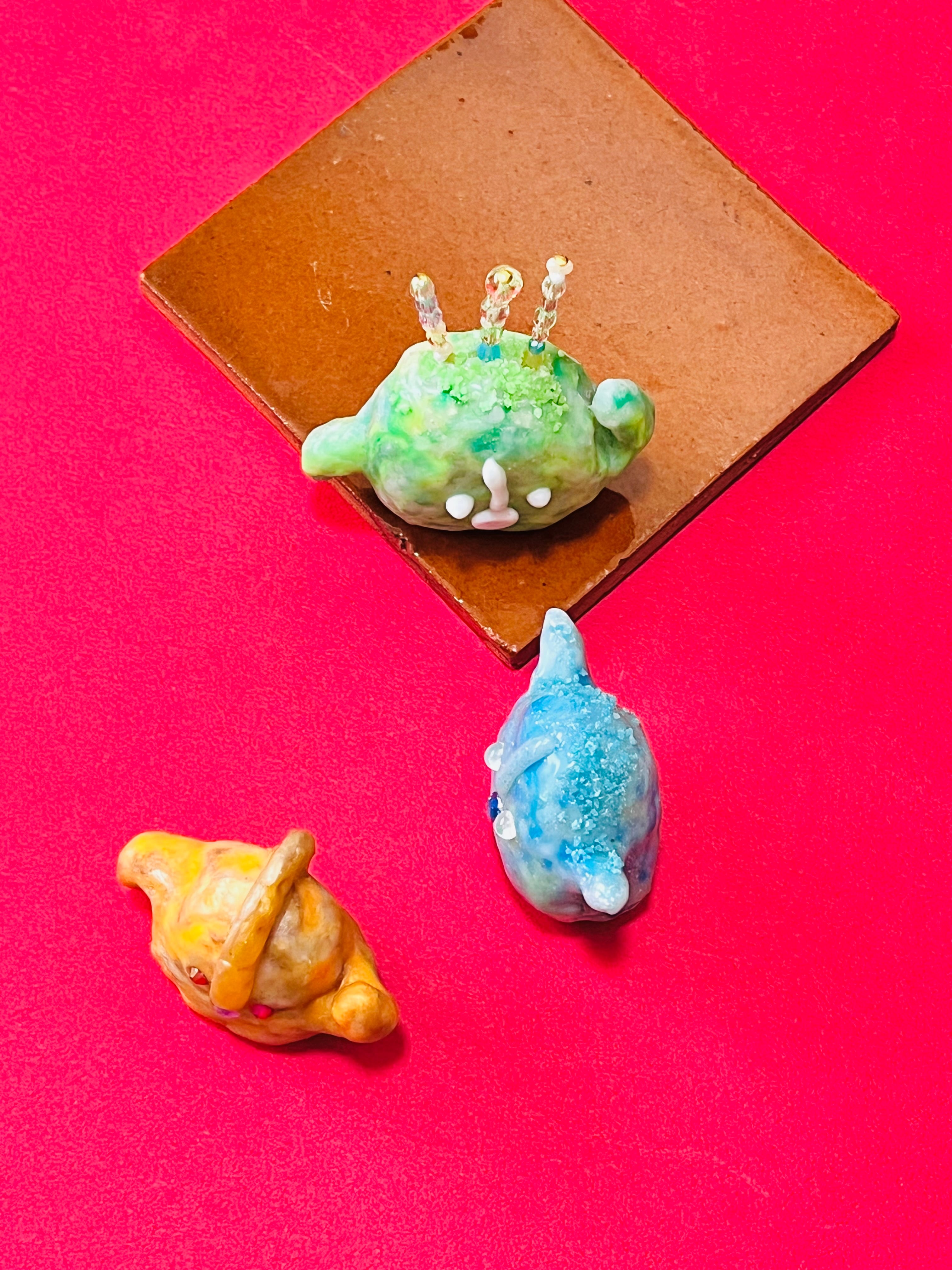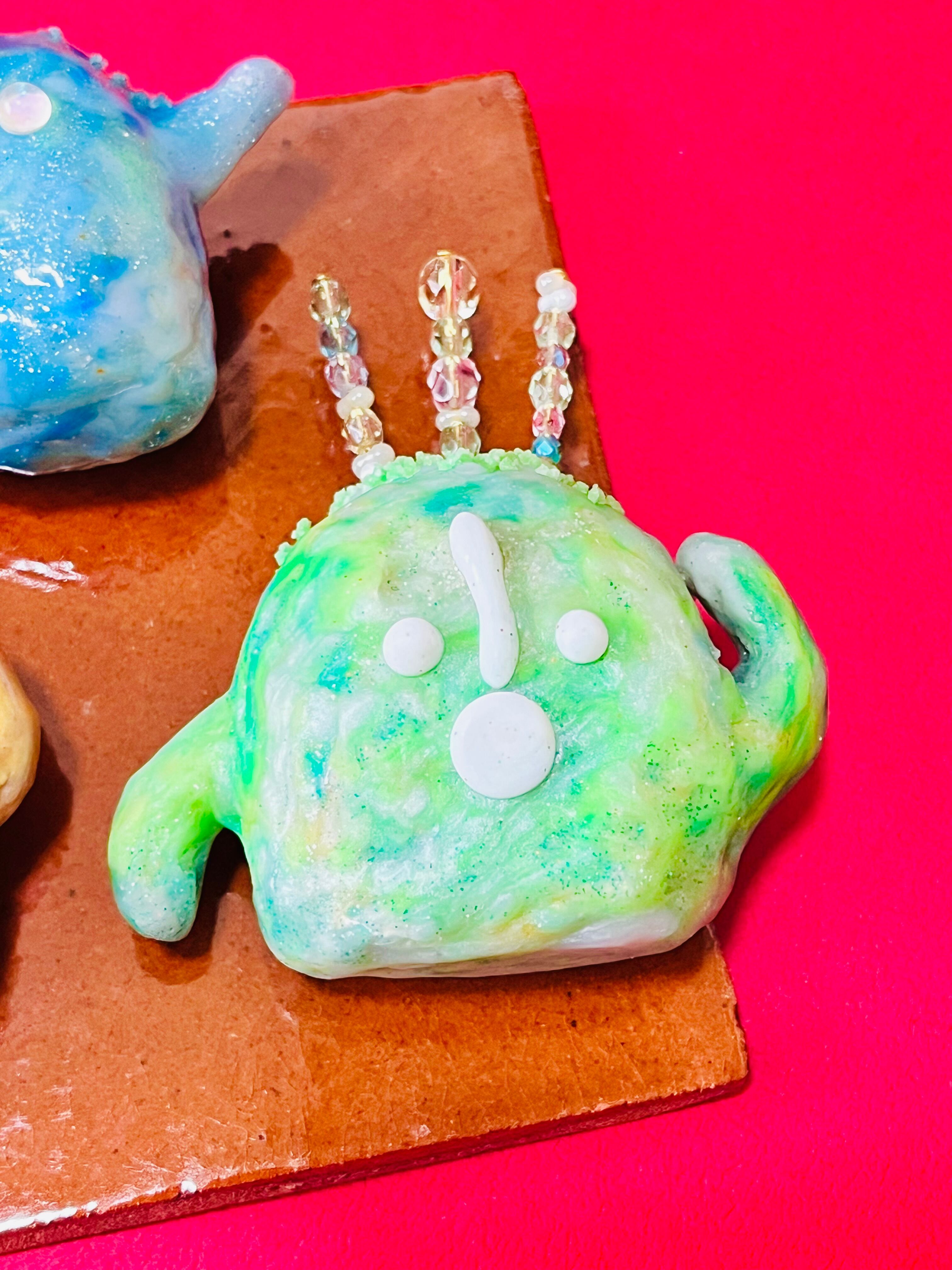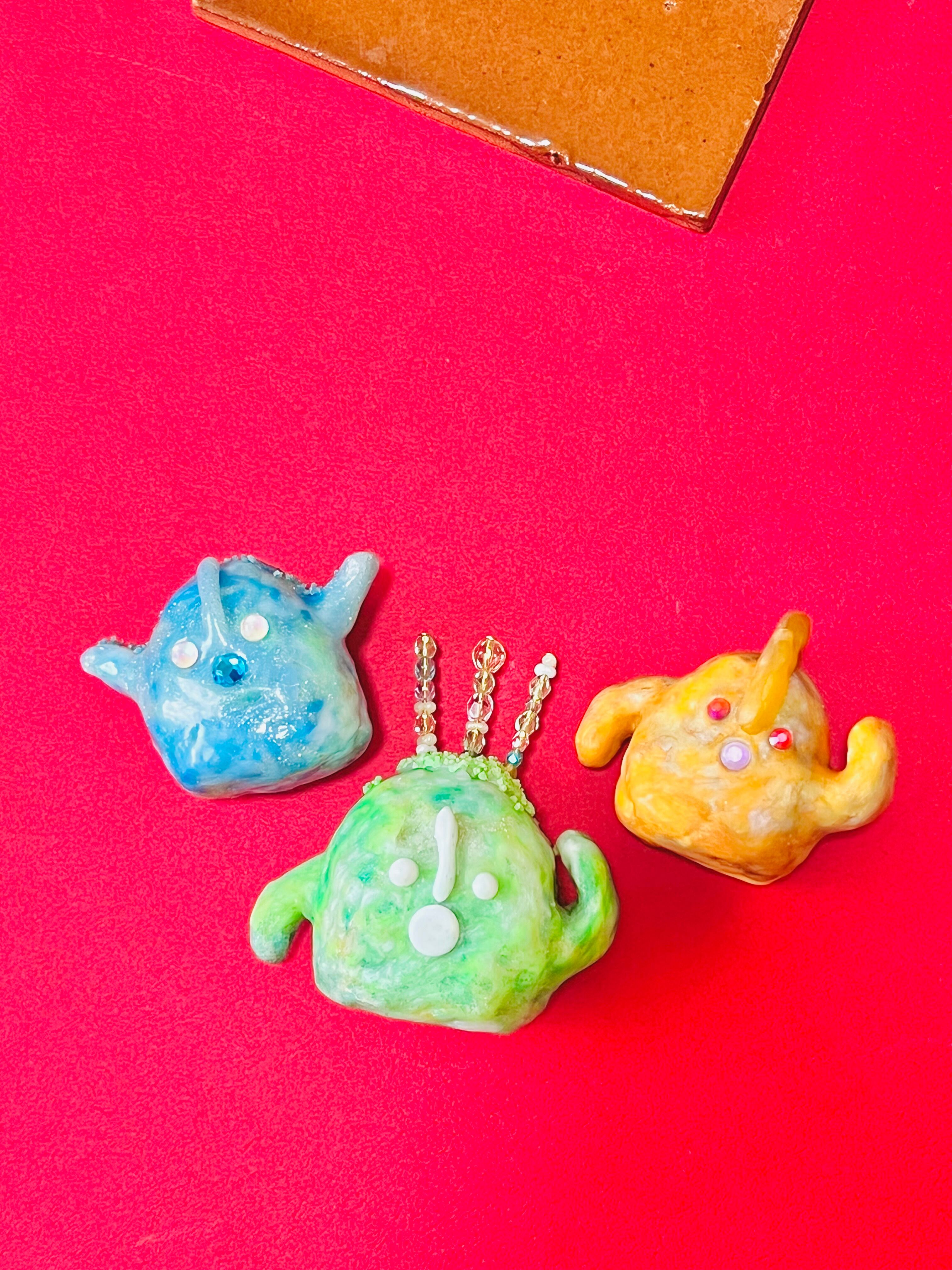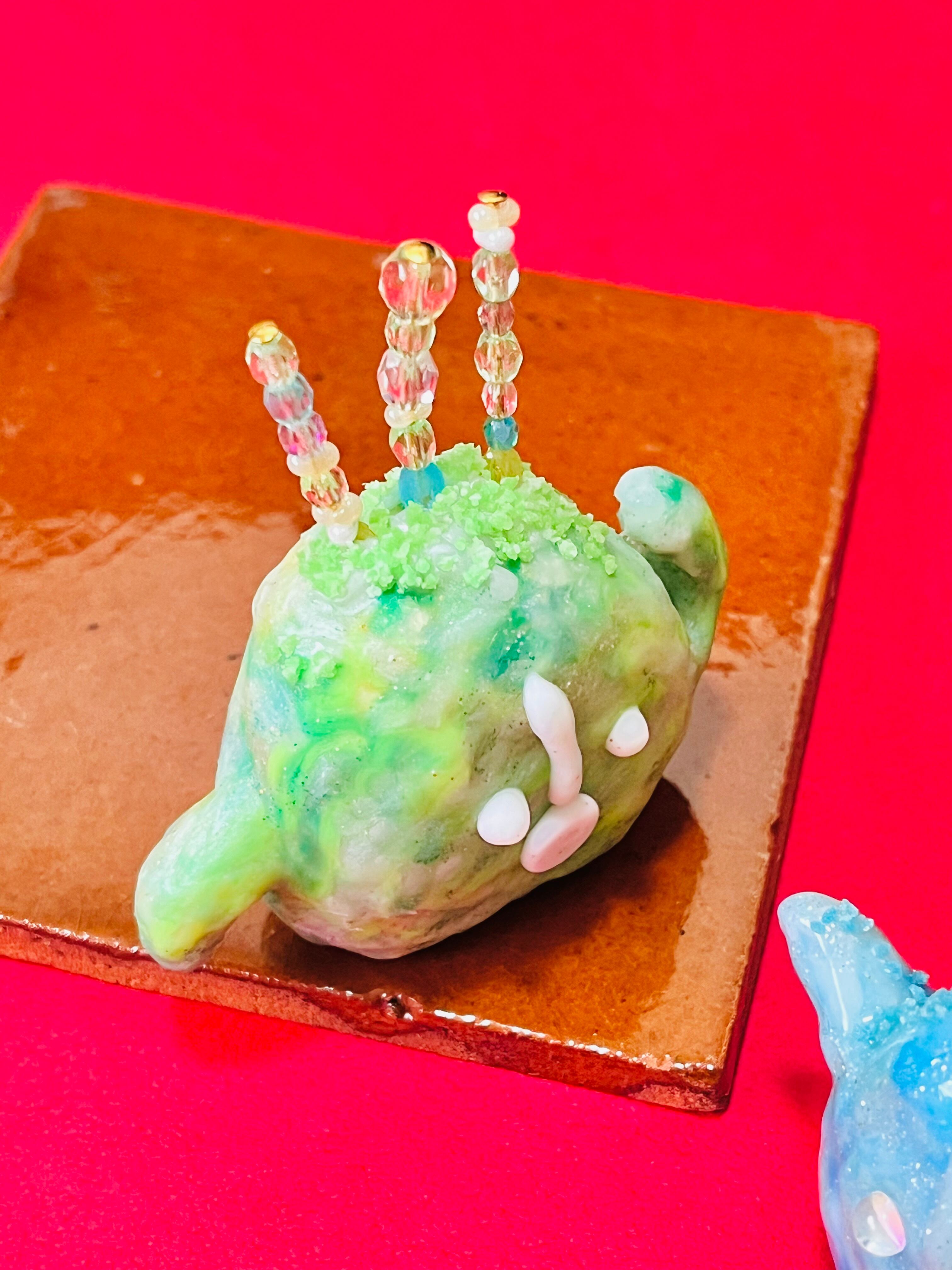 山:頭が光ります(蓄光)ビーズの飾りが特徴的