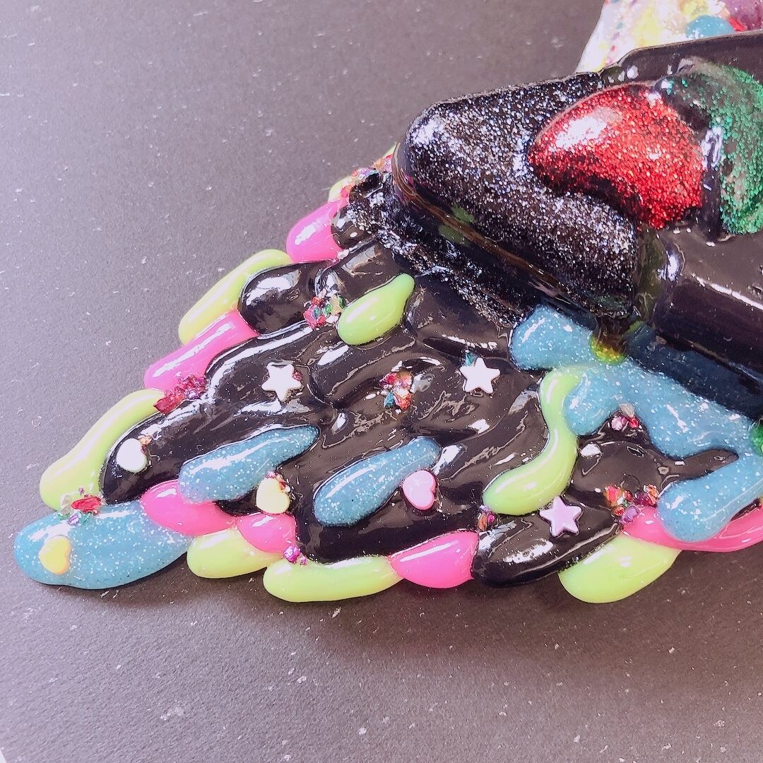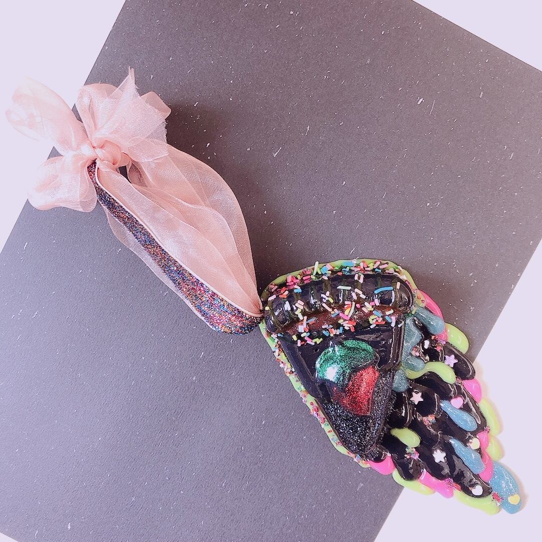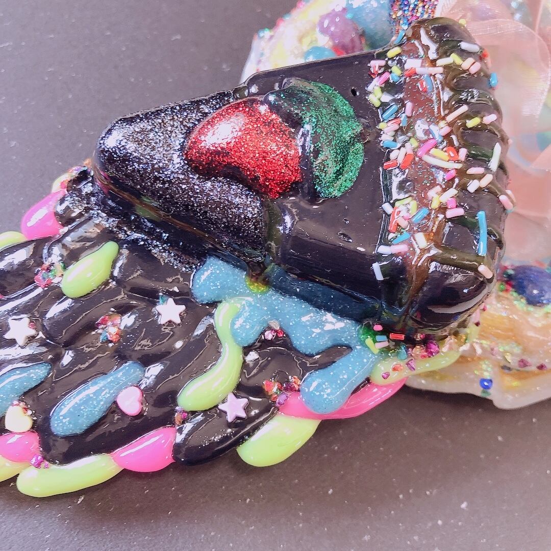 真っ黒なケーキが溶けだしているオーナメントです☻
