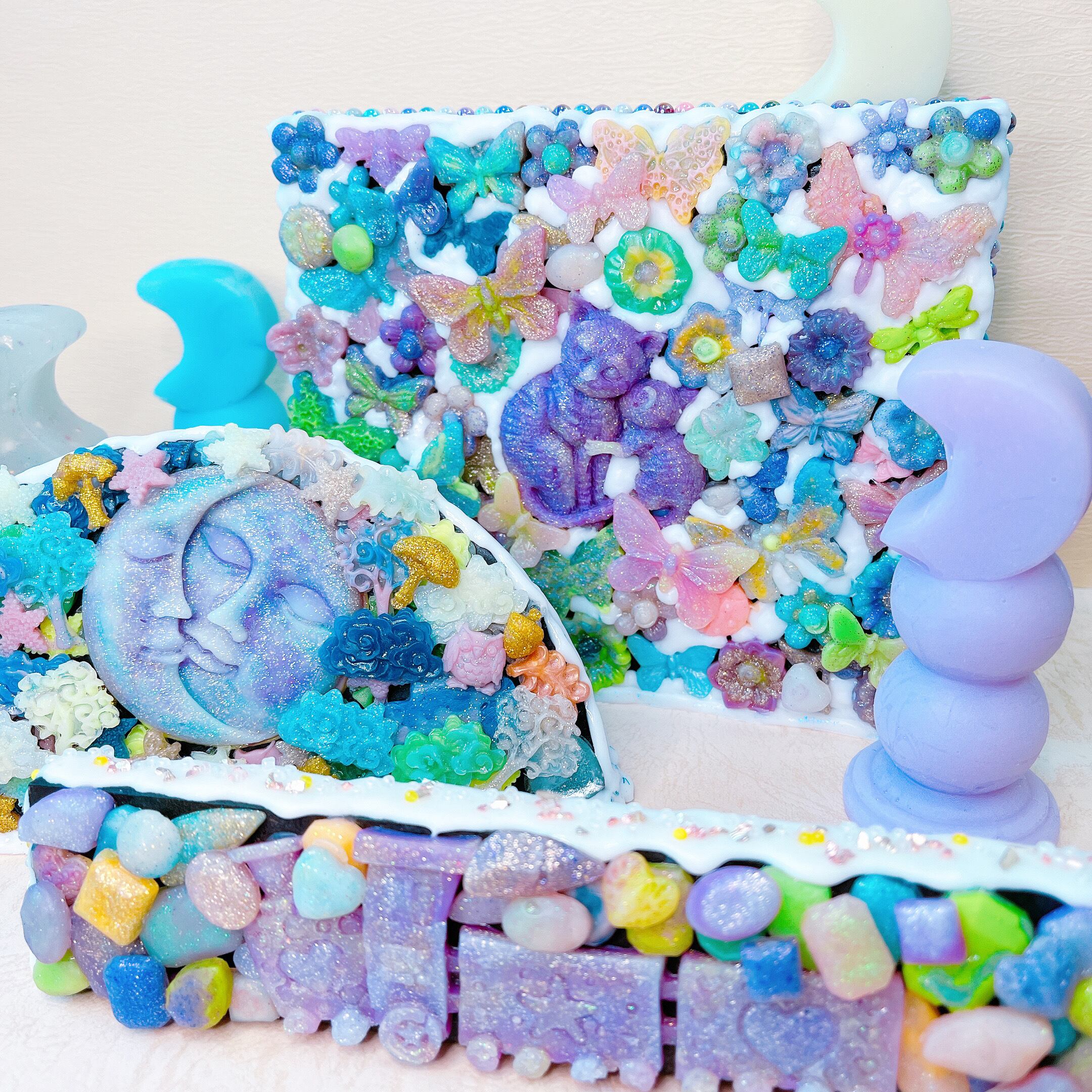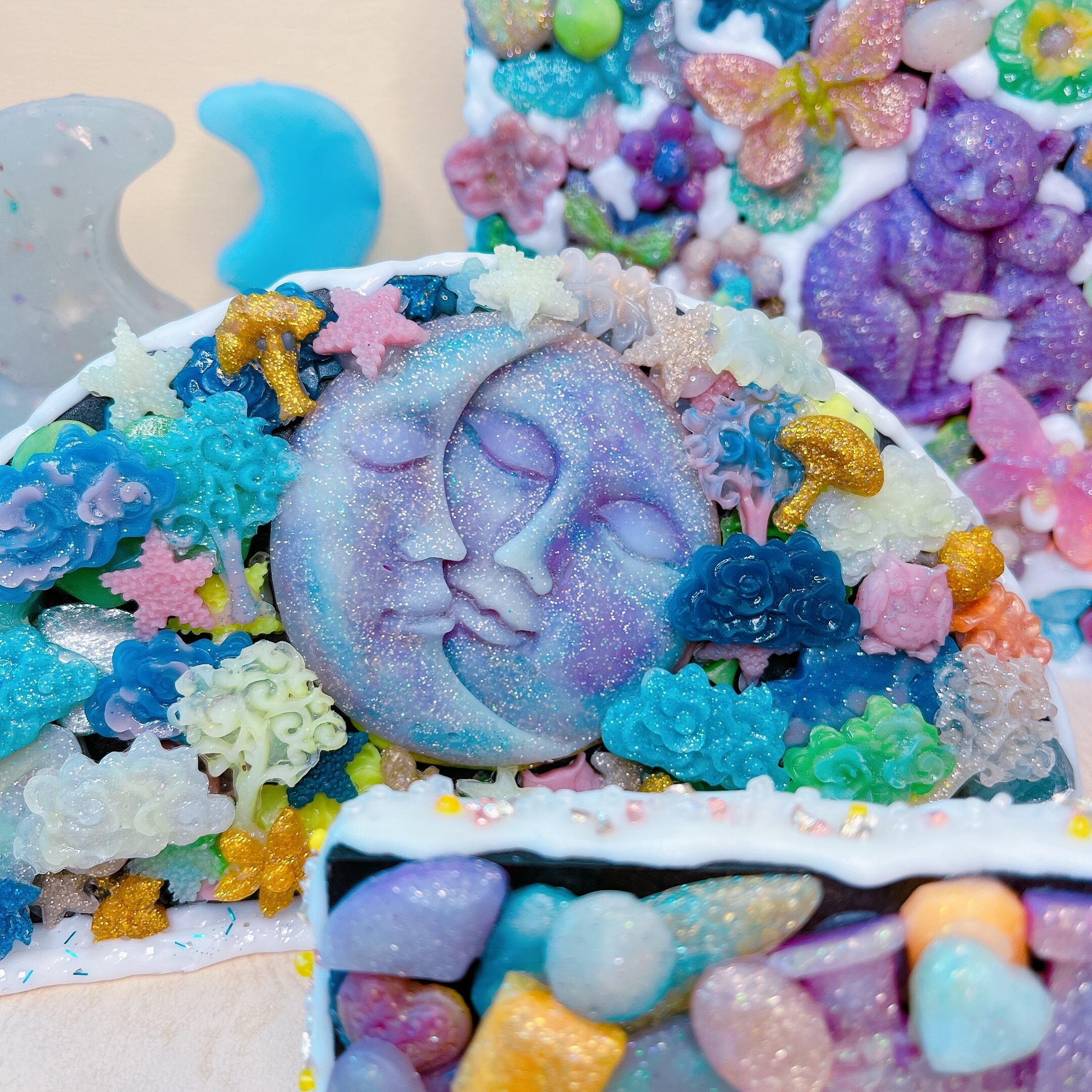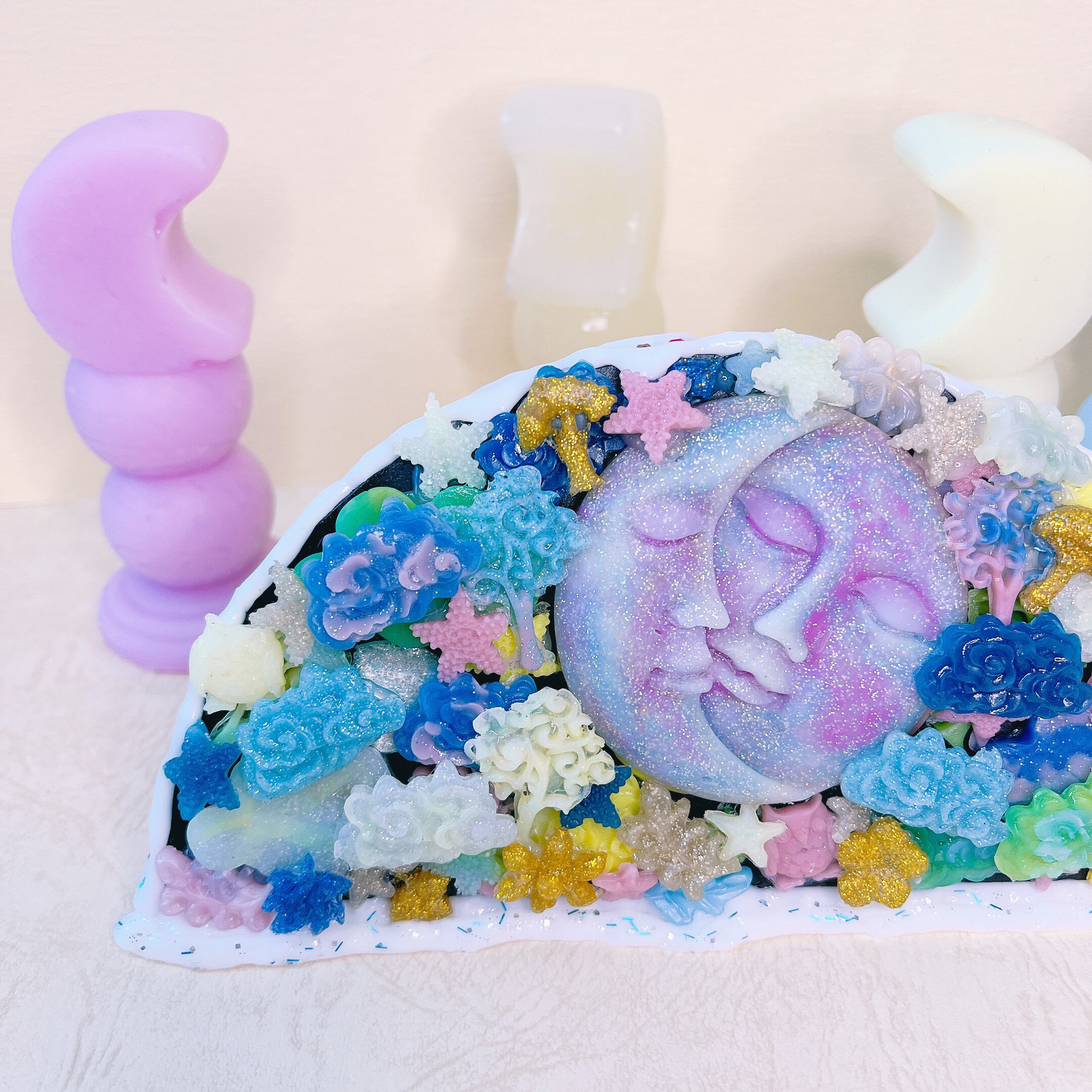 月と太陽はたくさんの色を混ぜて幻想的な雰囲気に。