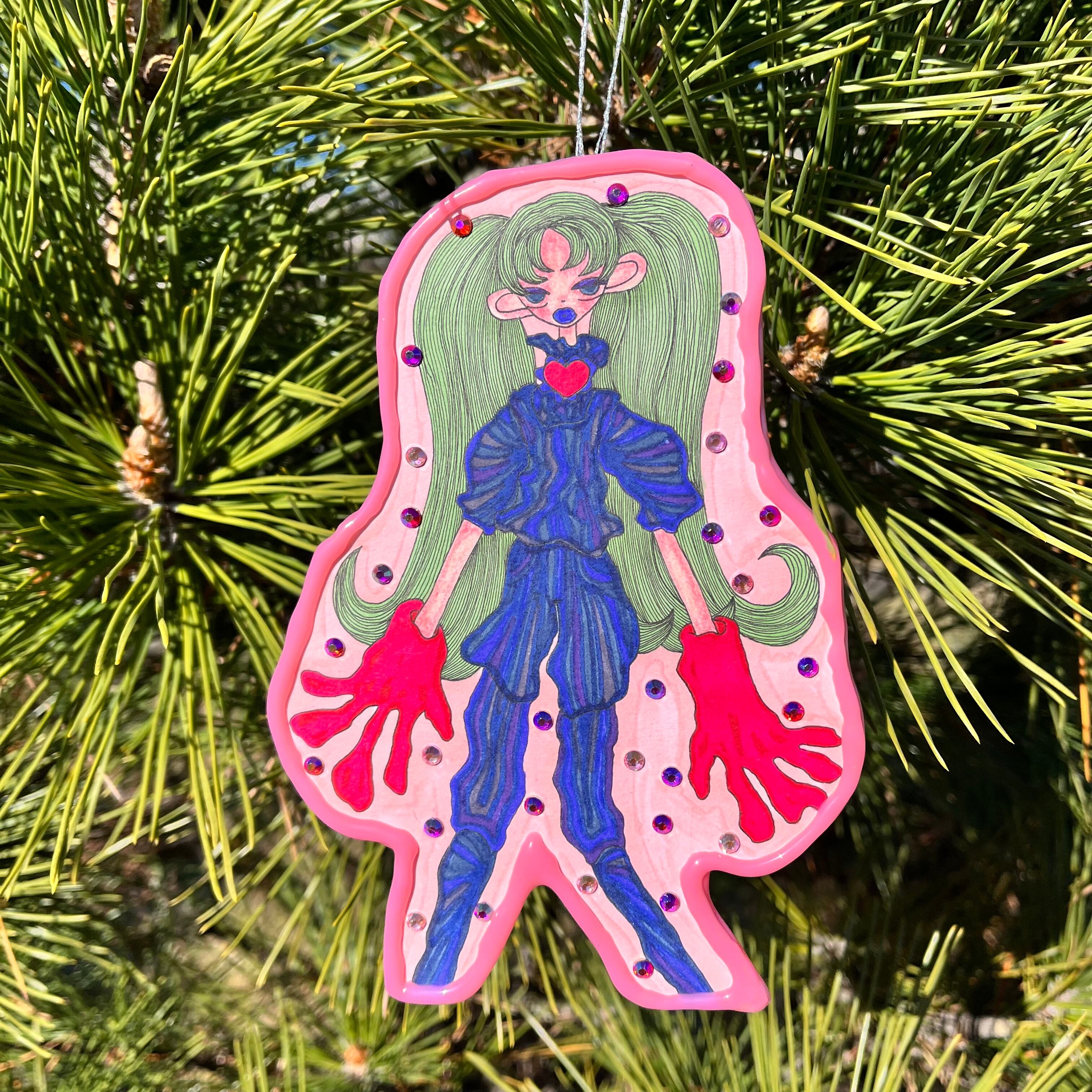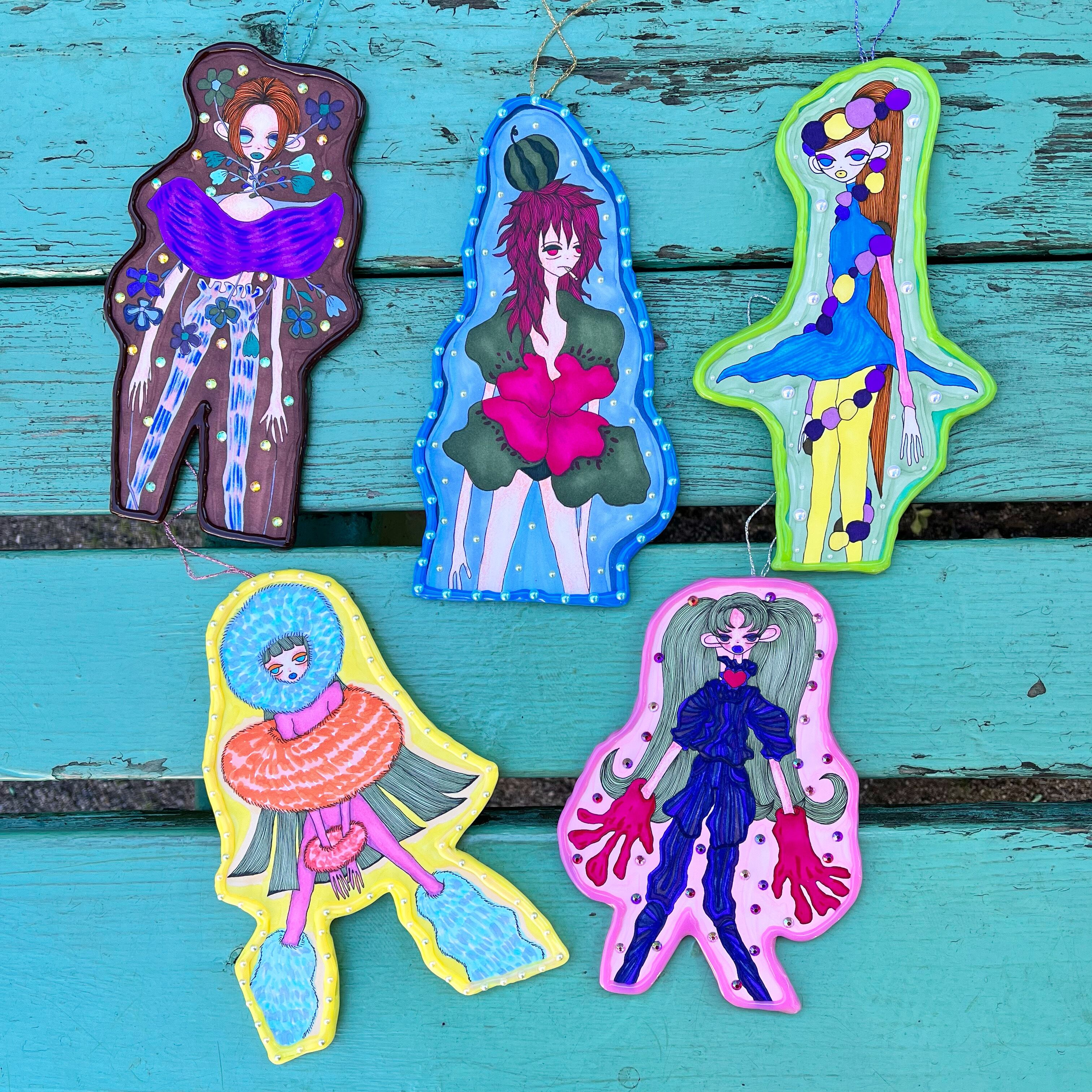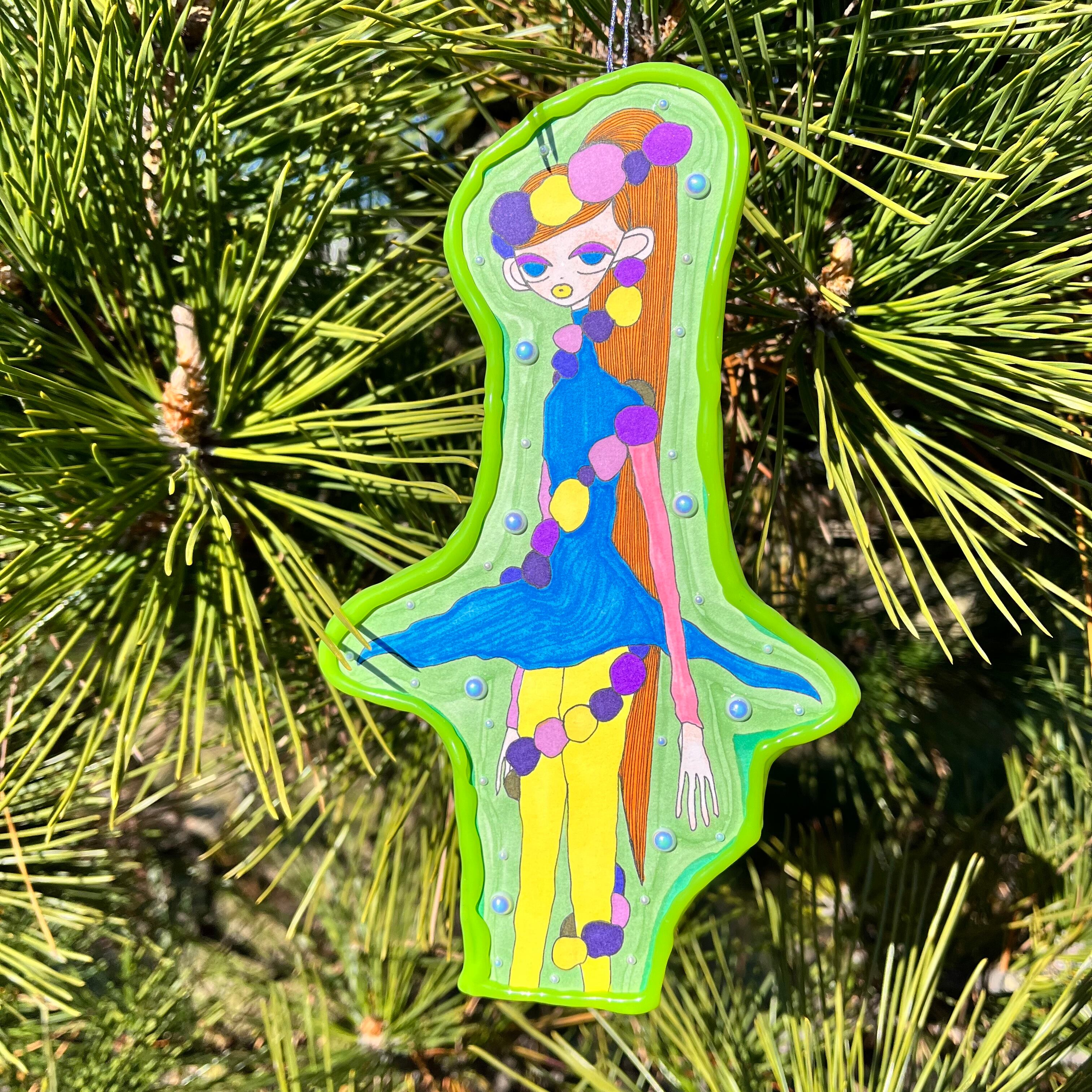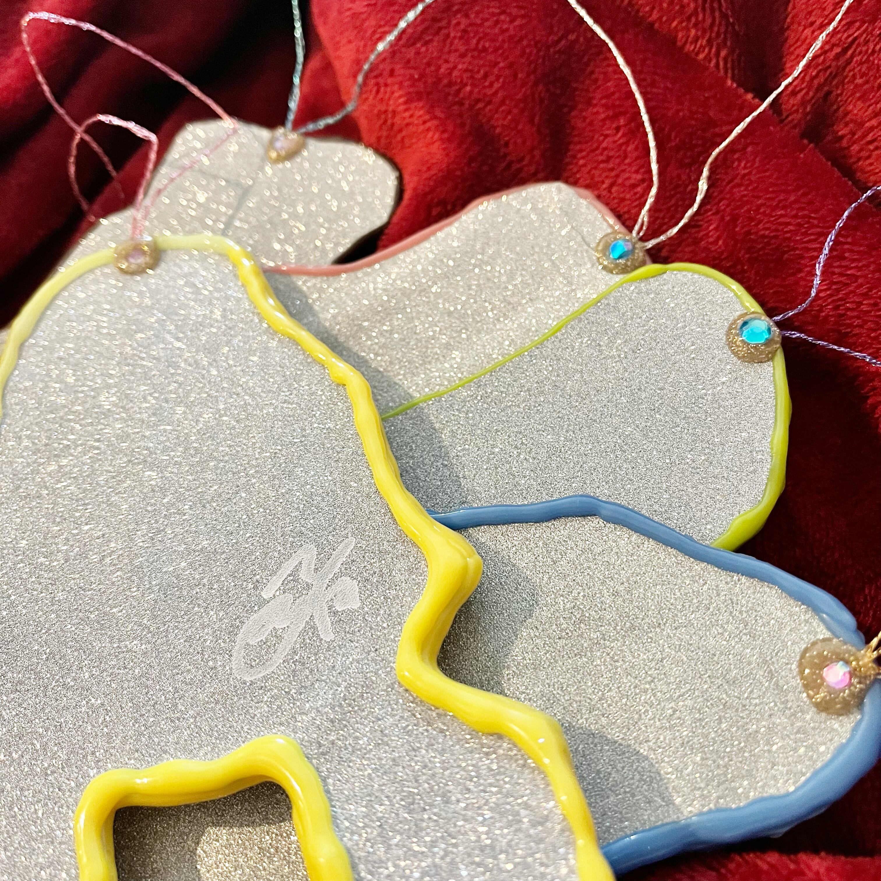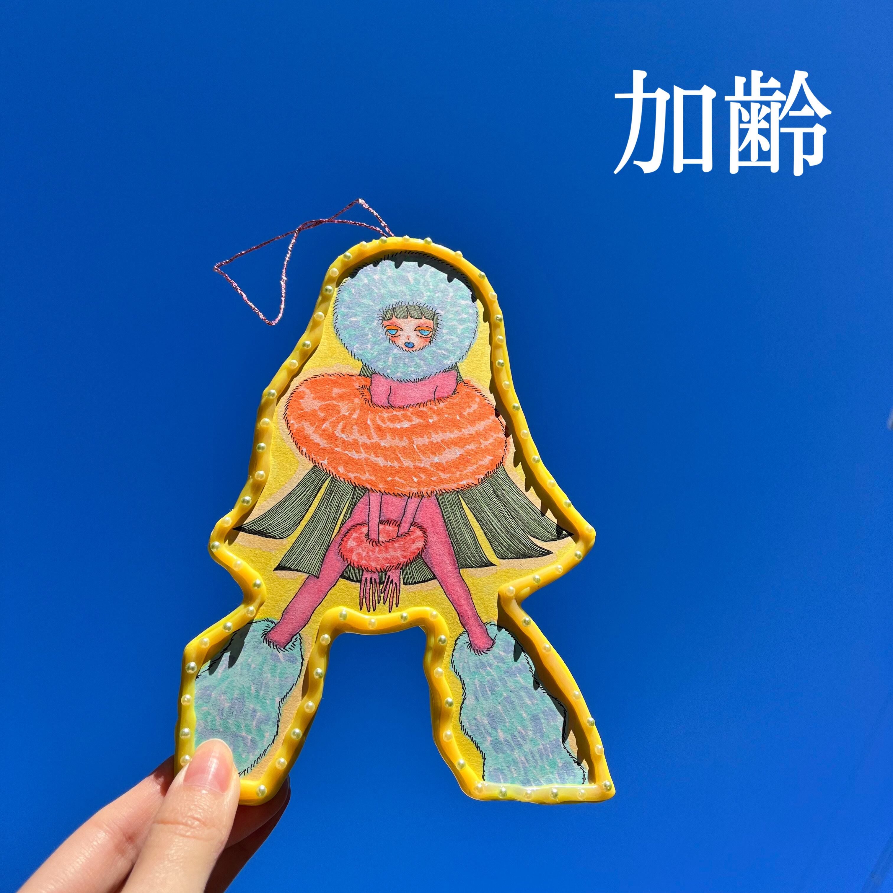 宇宙人をテーマに描いた原画を使用して、オーナメントを作りました。