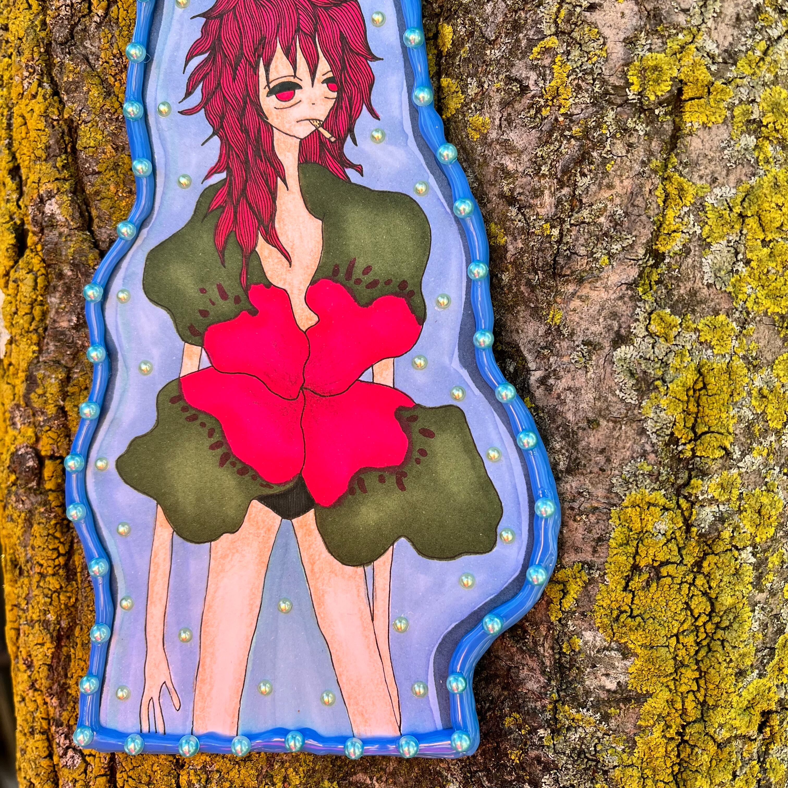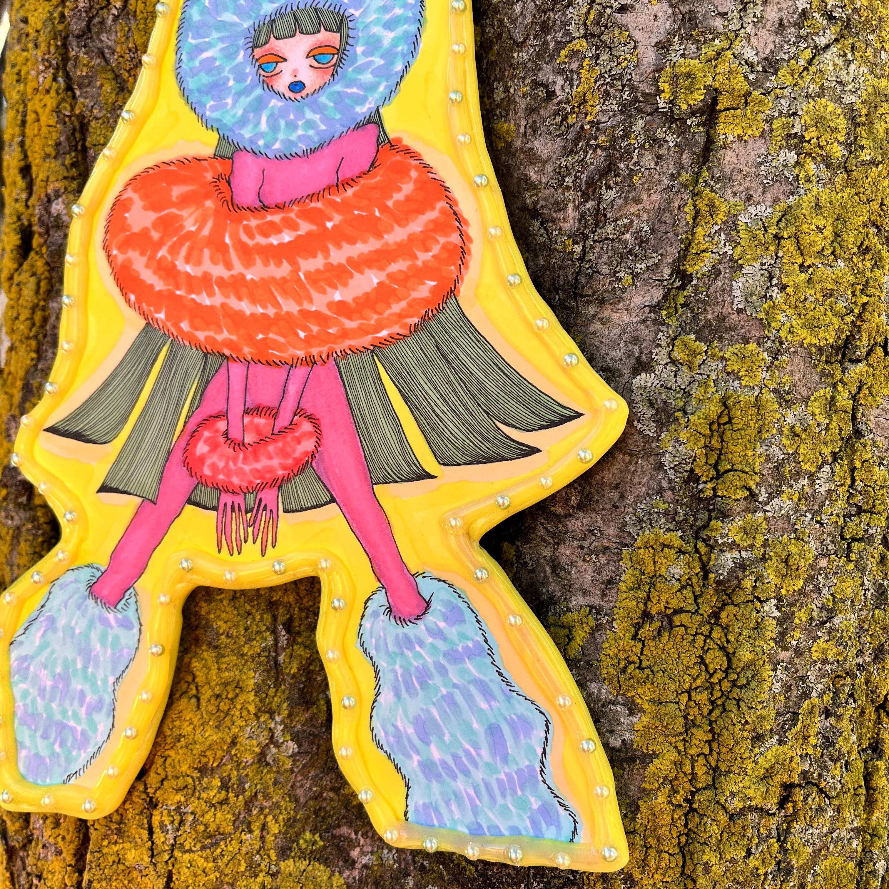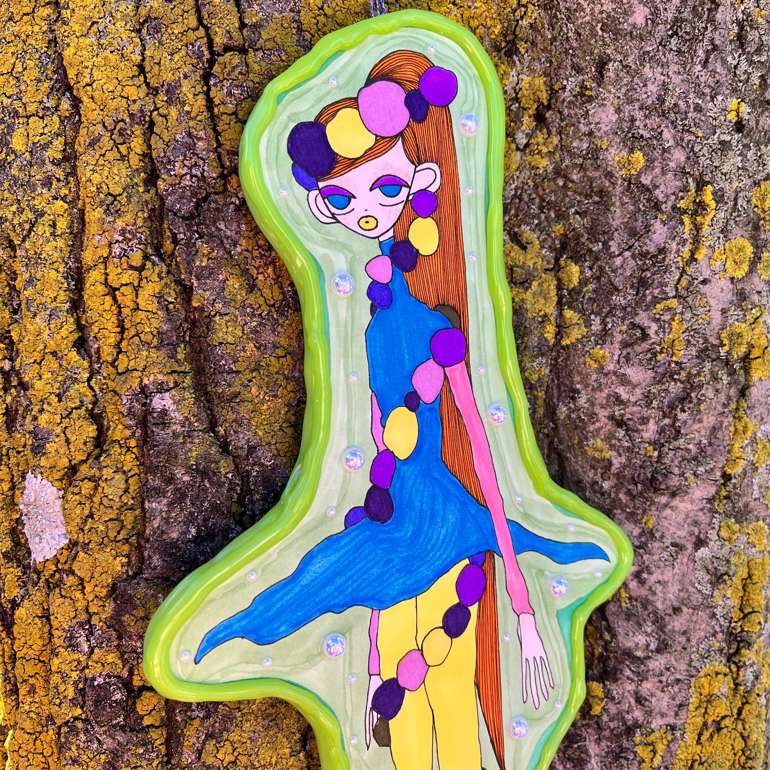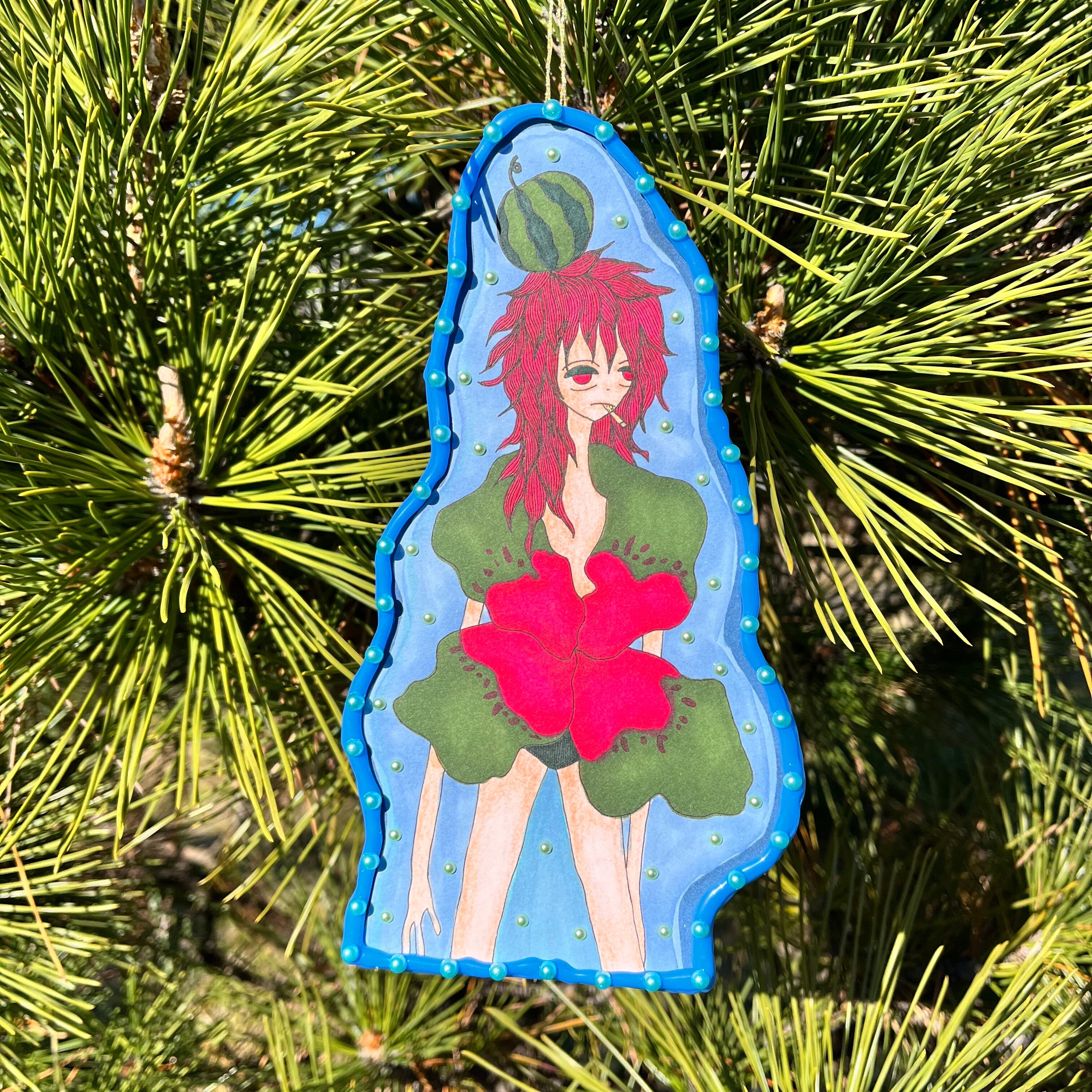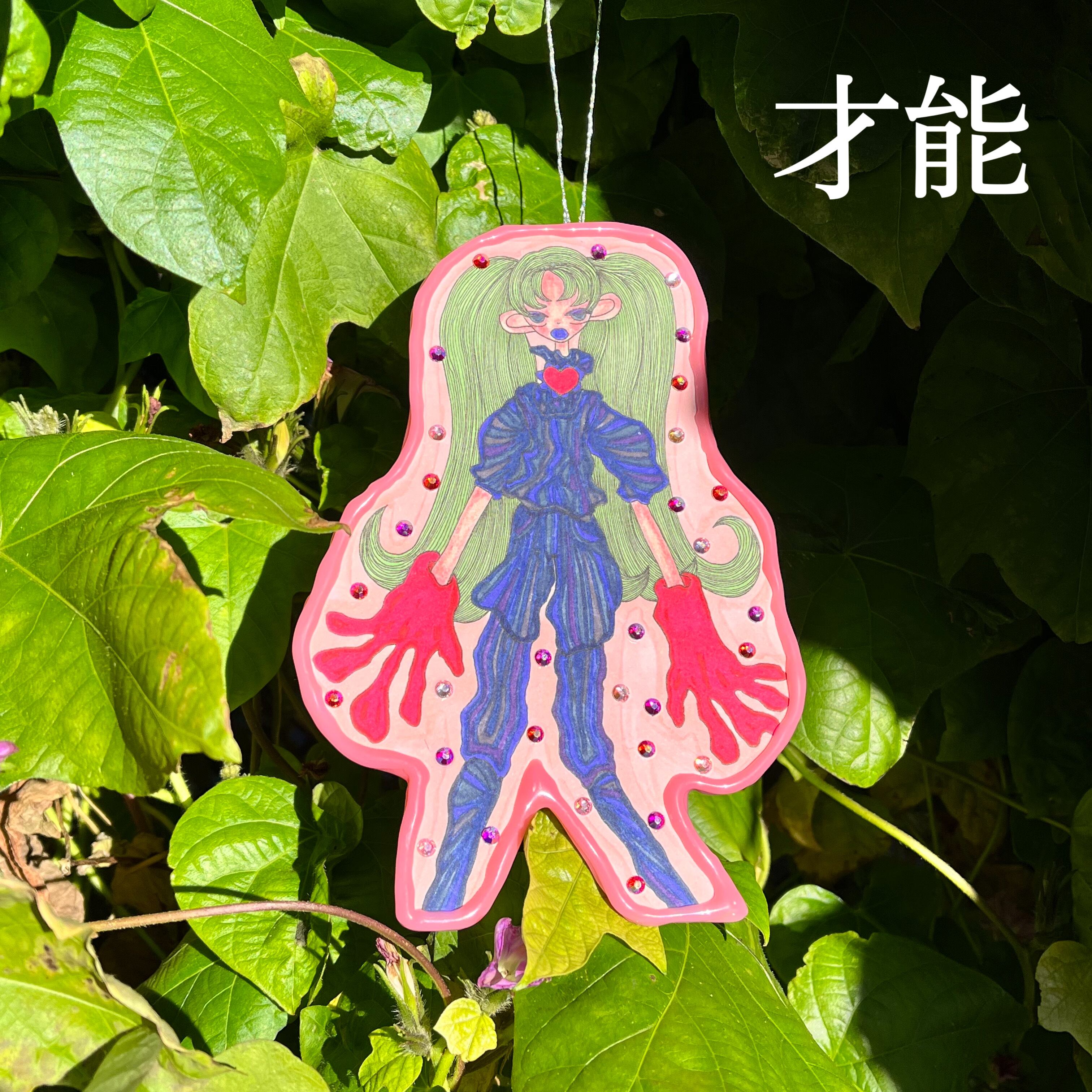 宇宙人をテーマに描いた原画を使用して、オーナメントを作りました。