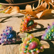 ビーズやラインストーンをたっぷり使ったカラフルなリングです。