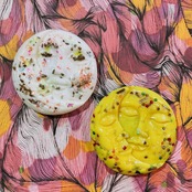 ビーズなどのパーツを埋め込んでたのしいデザインに仕上げました。