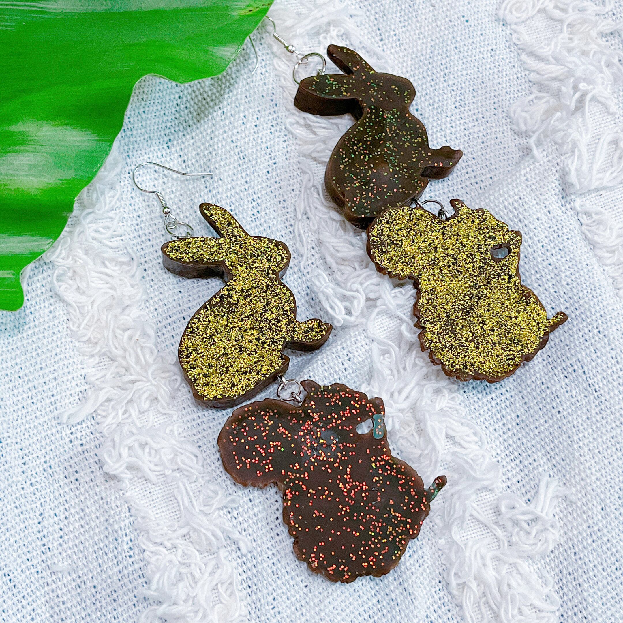 大きなうさぎとりすのイヤアクセ。