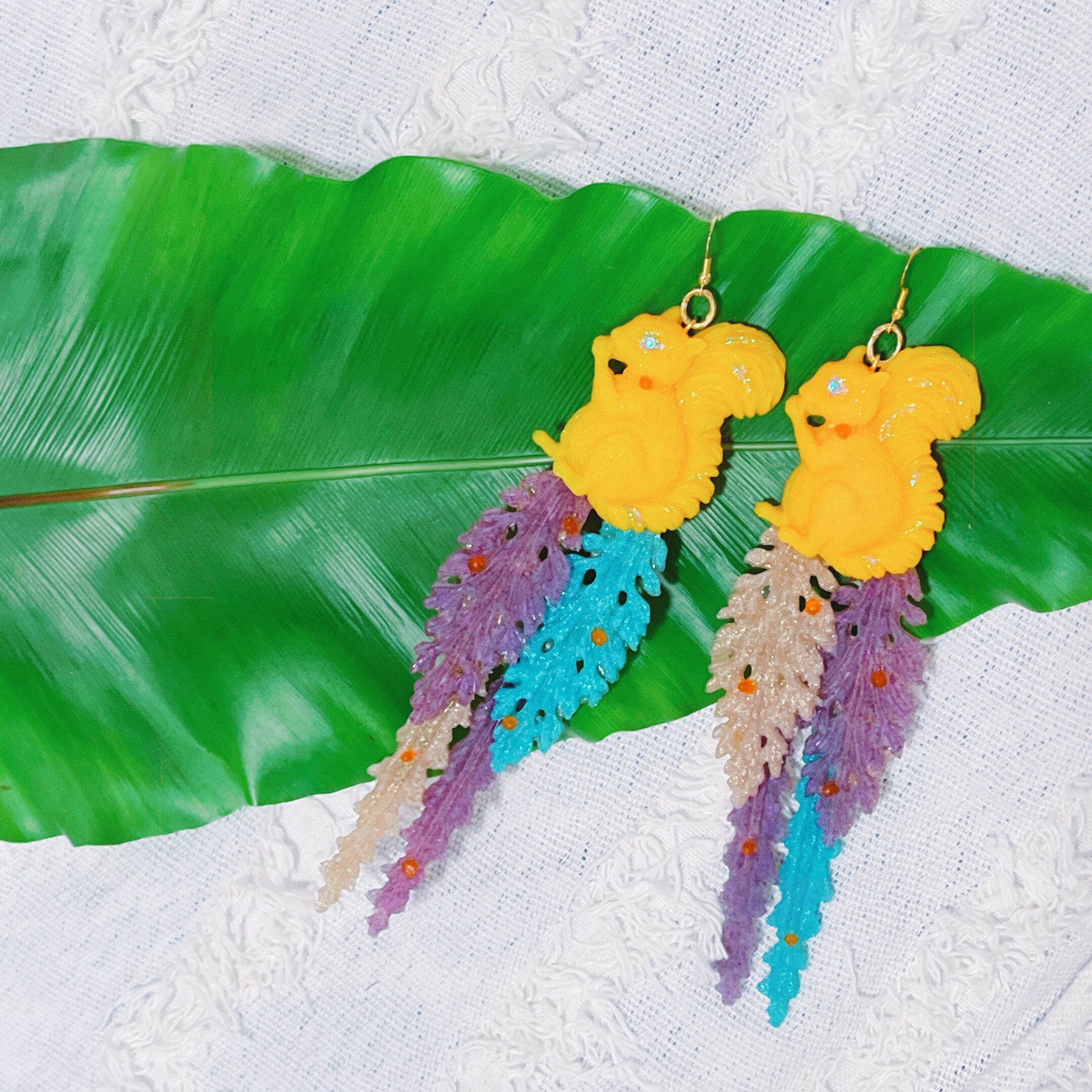 大きなりすと葉っぱのイヤアクセ。