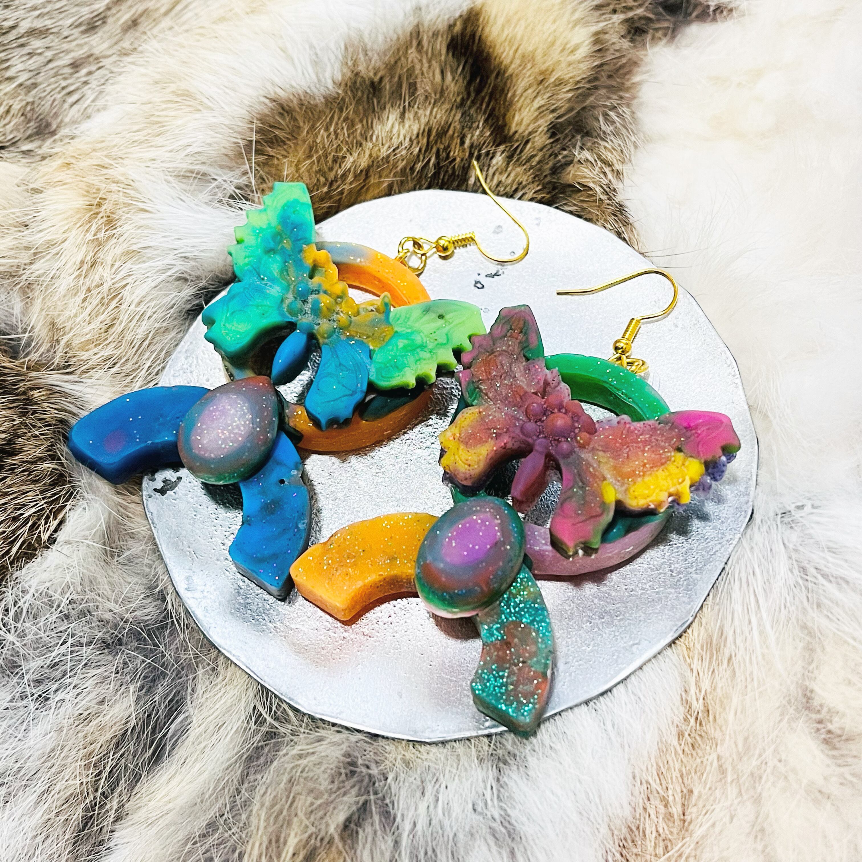 派手で、大ぶりで人と被らないデザイン、かつ軽いピアスが欲しいというわたしのわがままから生まれたグルーアクセサリー☾