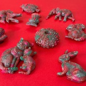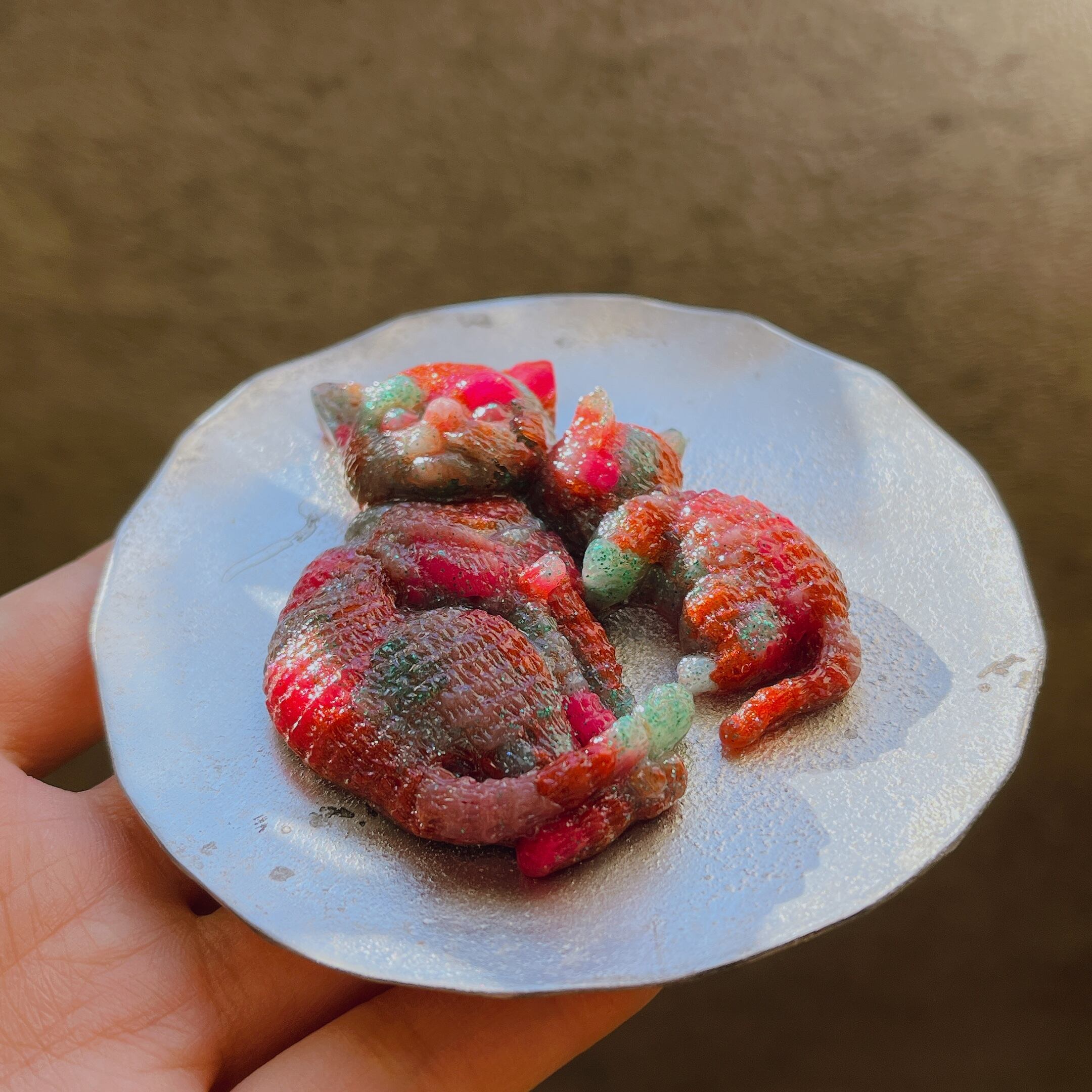 赤、緑、ピンク、水色、薄紫…などたくさんの色を使ってパーツを作りました。