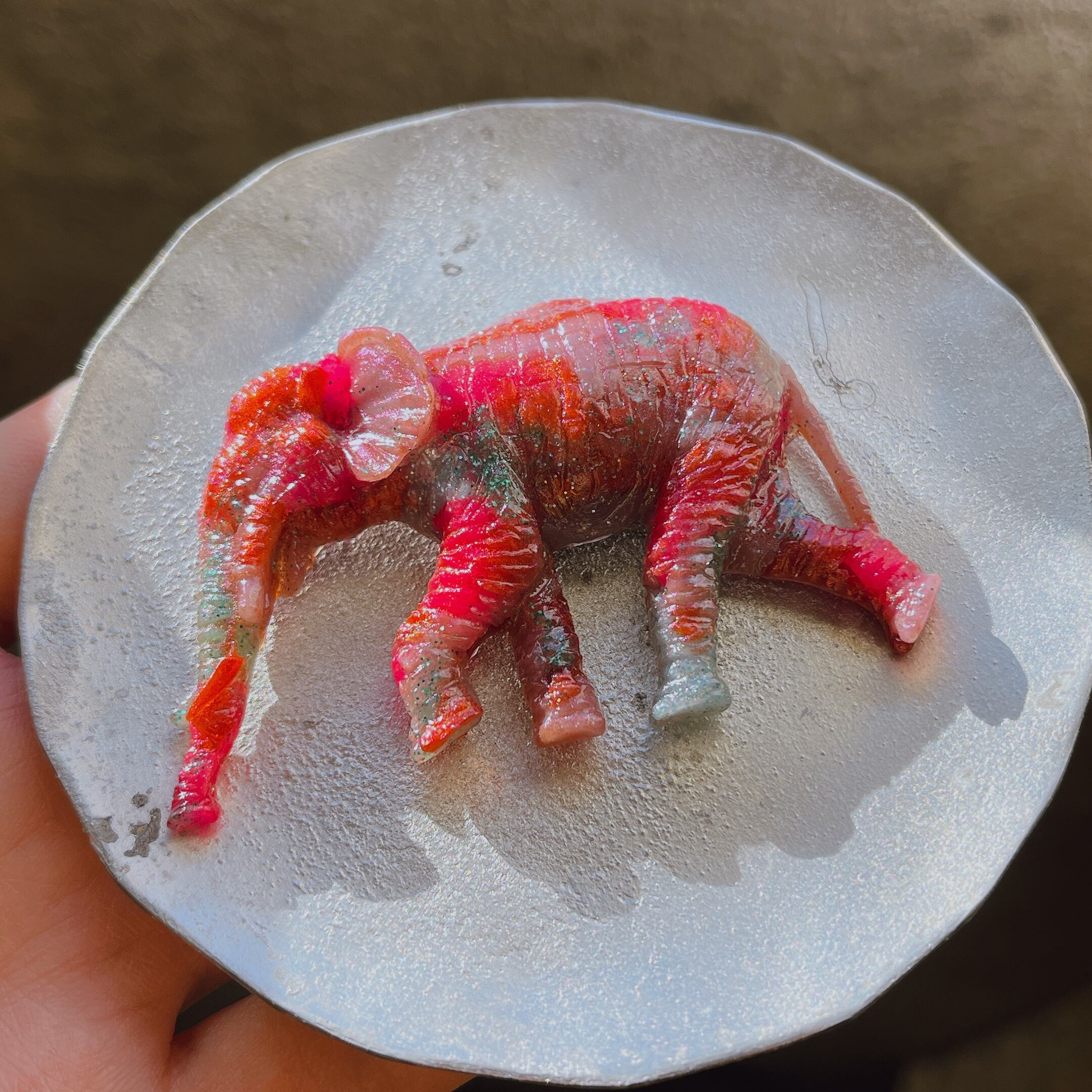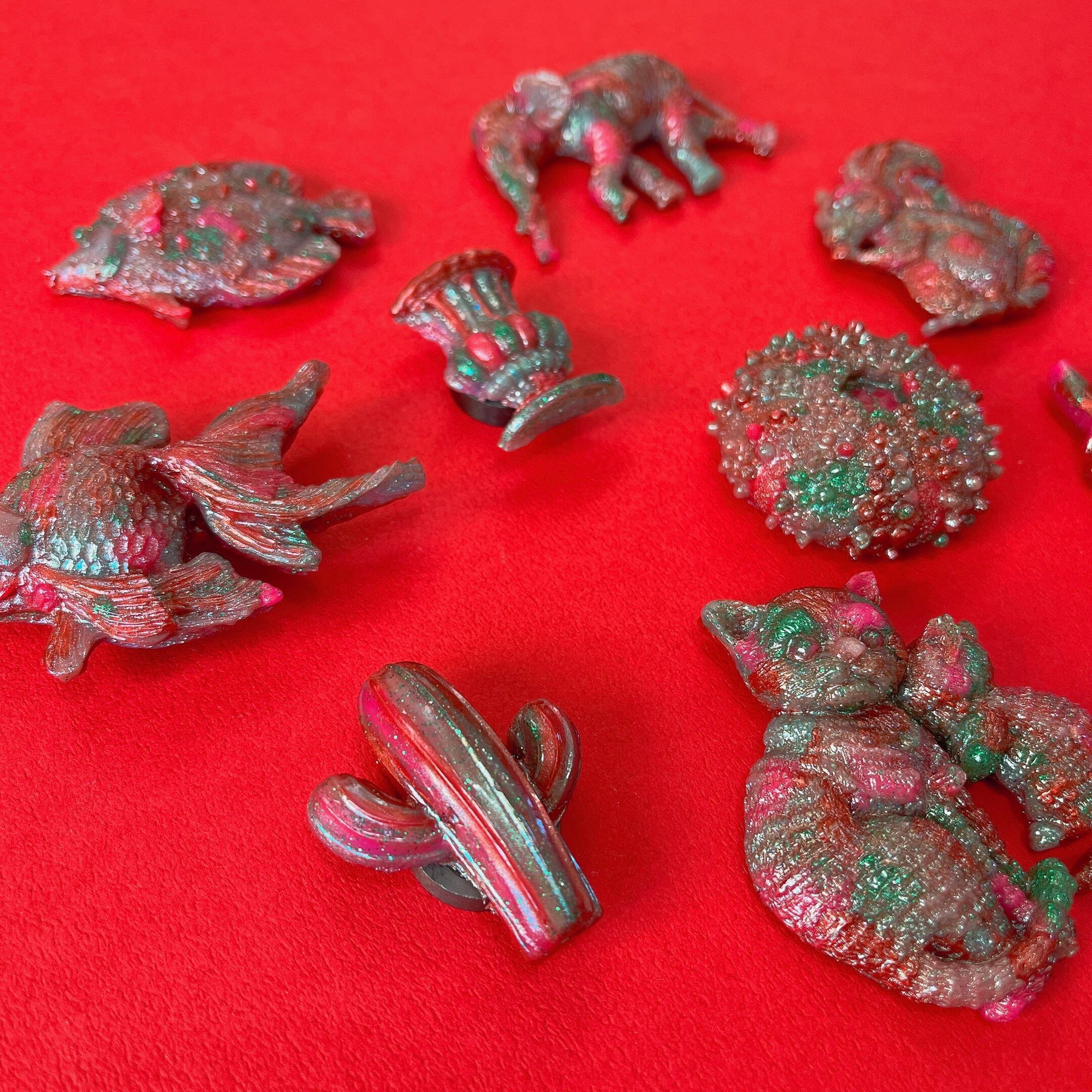 赤、緑、ピンク、水色、薄紫…などたくさんの色を使ってパーツを作りました。