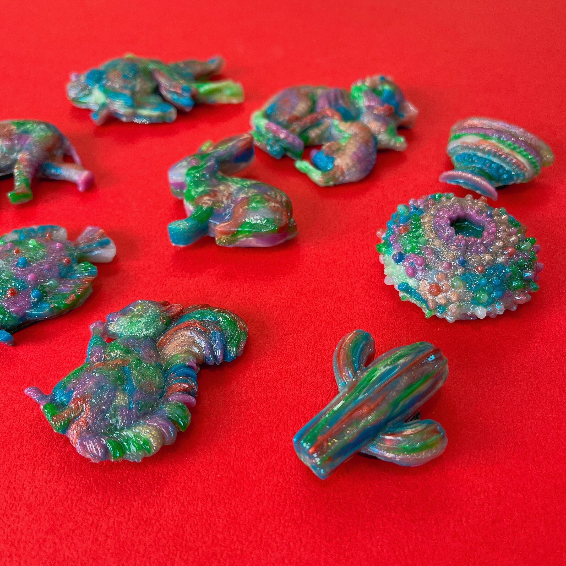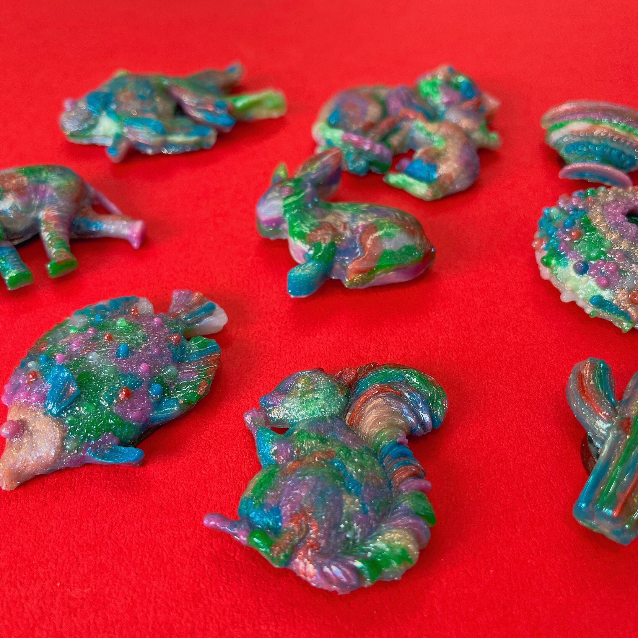 青、紫、オレンジ、緑、シルバー…などたくさんの色を使ってパーツを作りました。