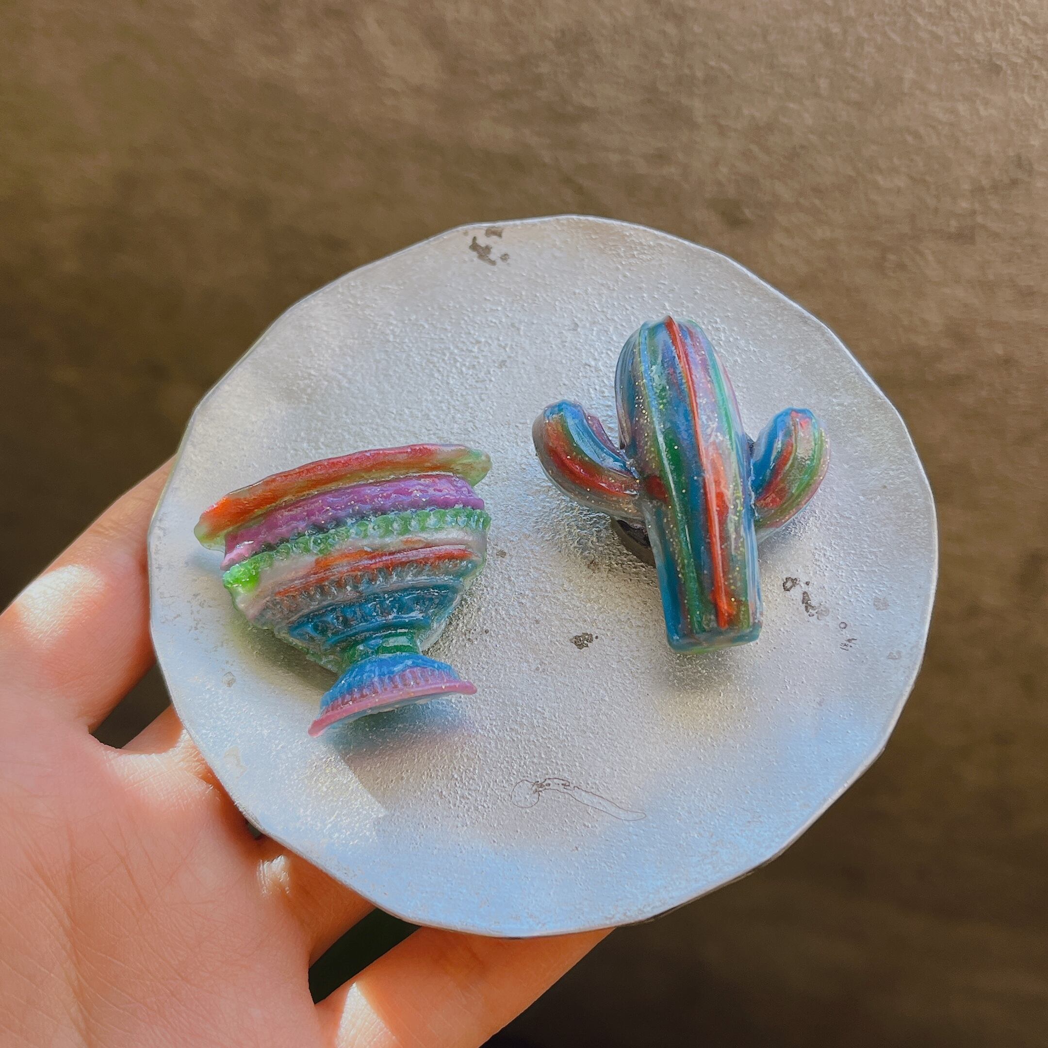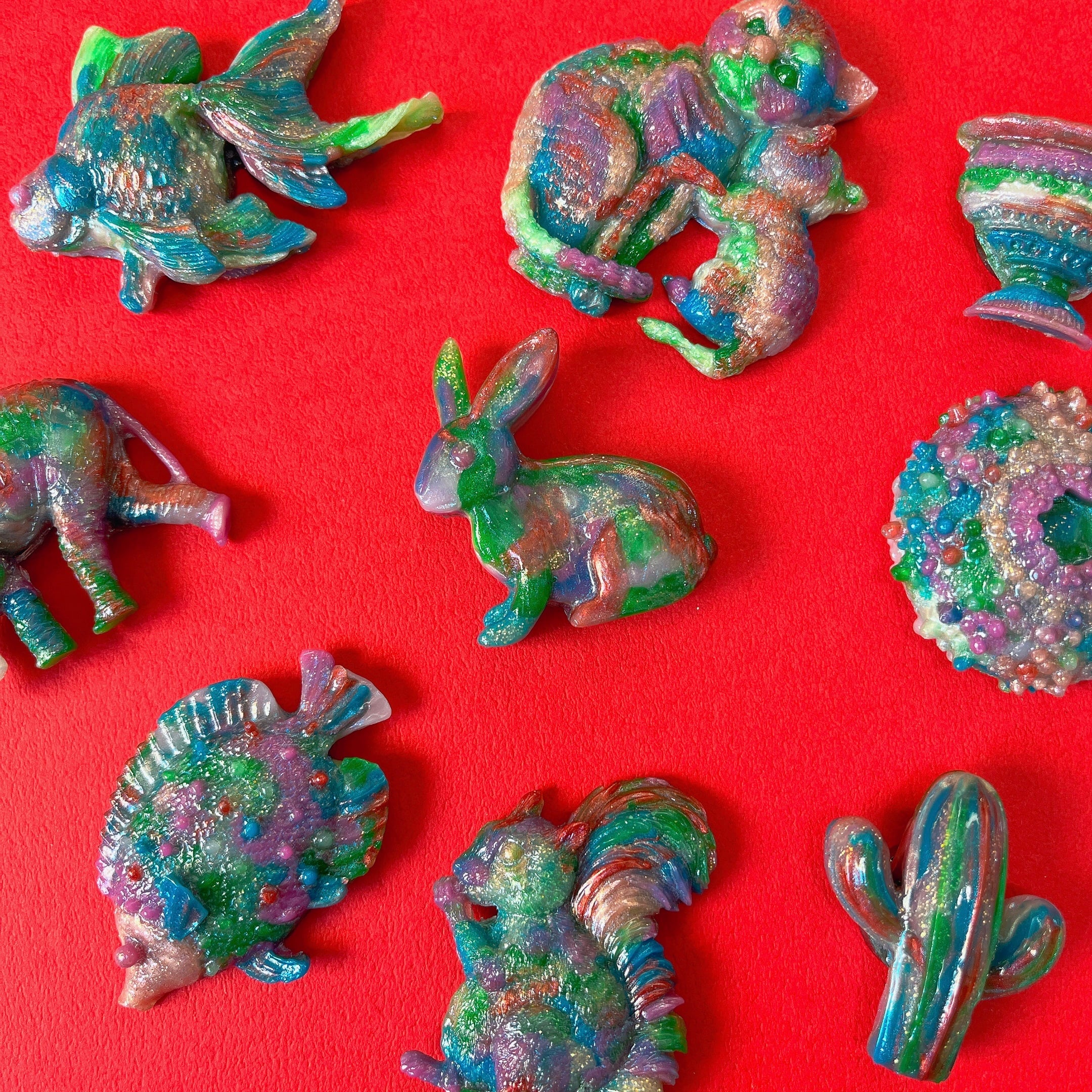 青、紫、オレンジ、緑、シルバー…などたくさんの色を使ってパーツを作りました。