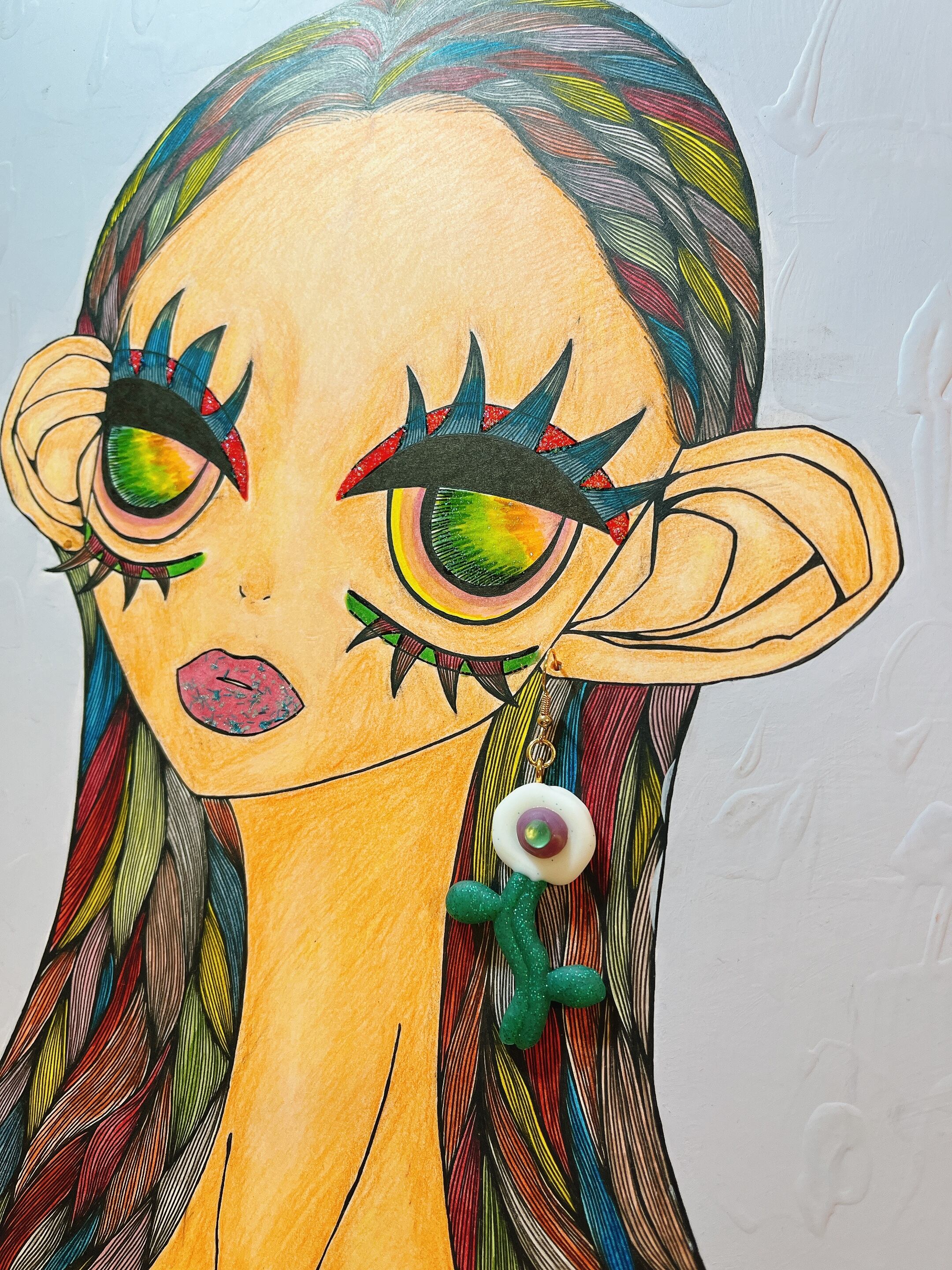 グリーンのラインストーンがほんのり光るかわいいちびアクセ☁