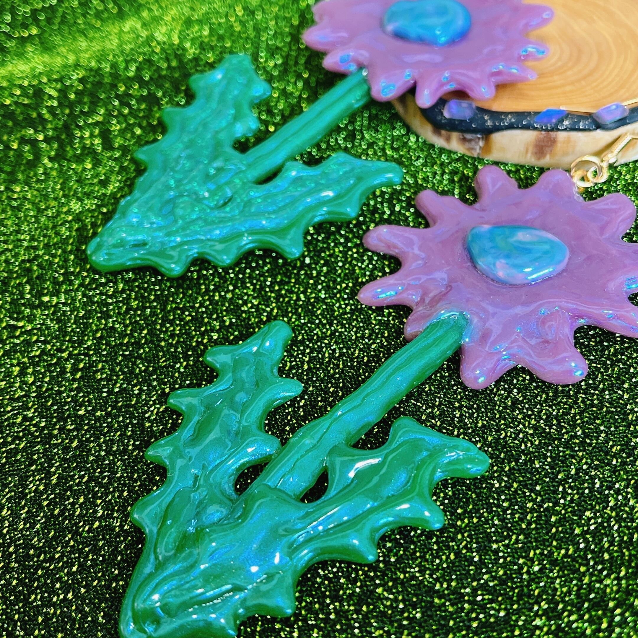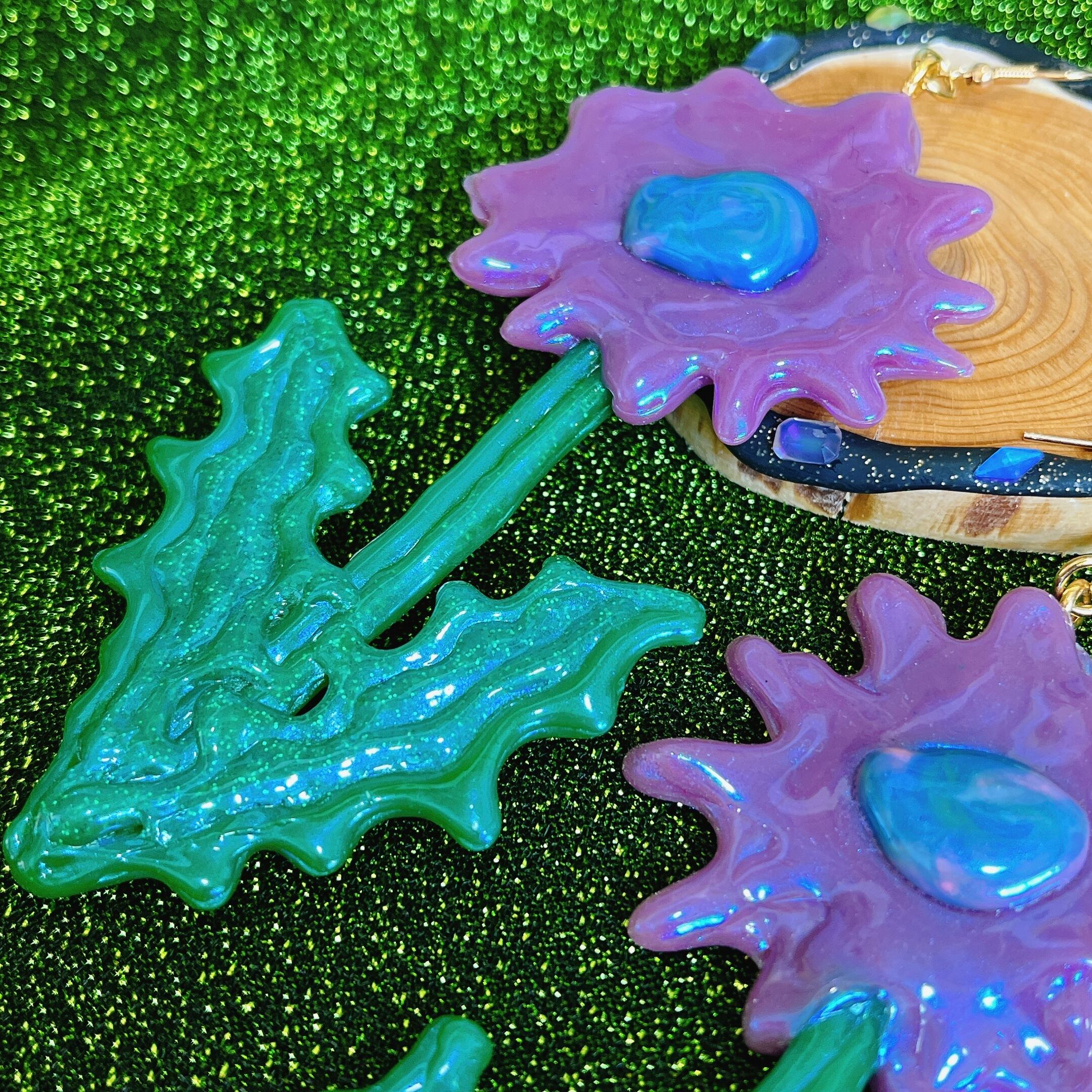ほんのりオーロラカラーのパープルで妖しげな雰囲気もありつつ、お花というキュートなモチーフ、そのバランスがとても好きです。