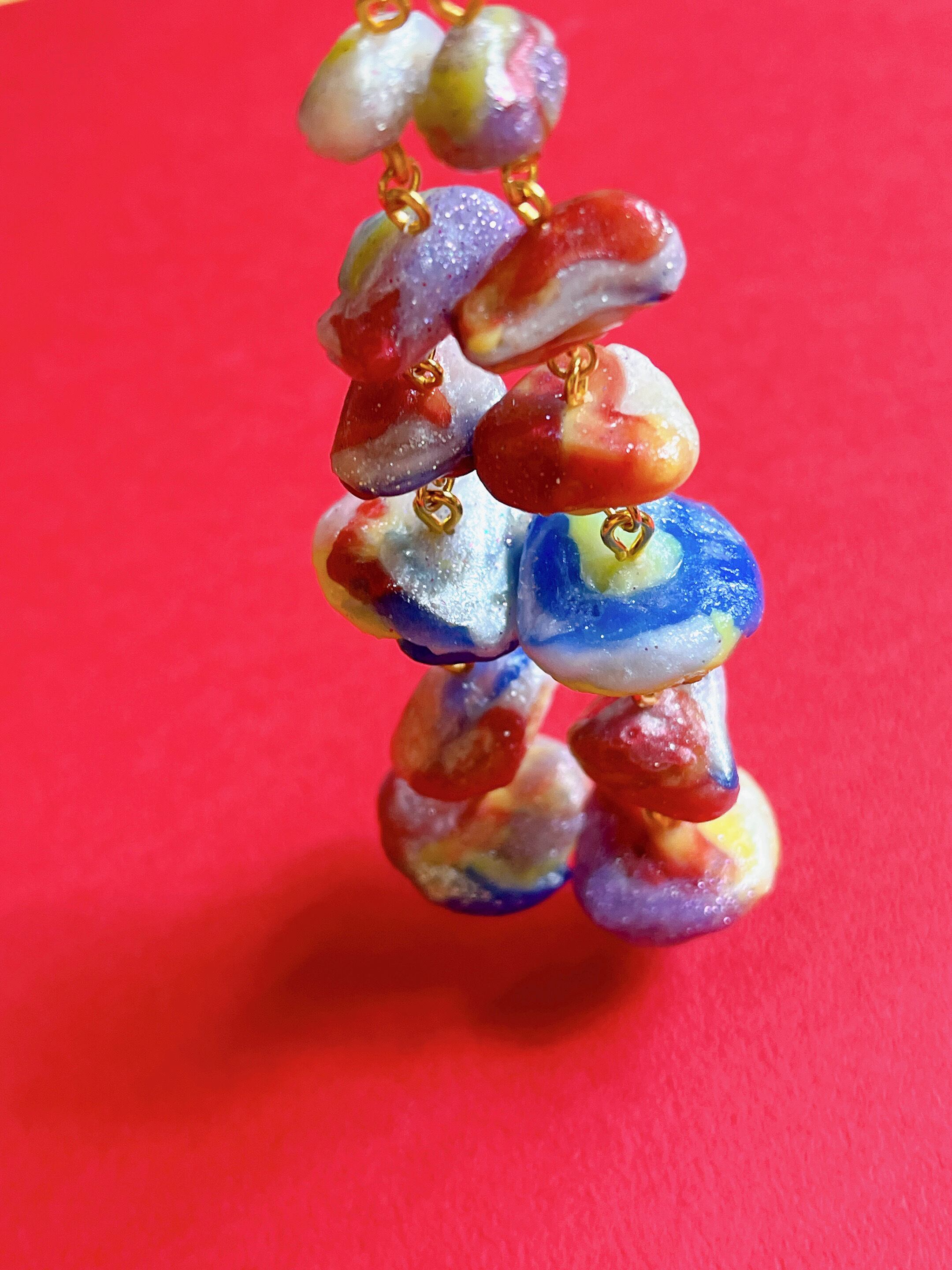 とにかくたくさんのカラーを混ぜて作ったエネルギッシュなアイテムです。