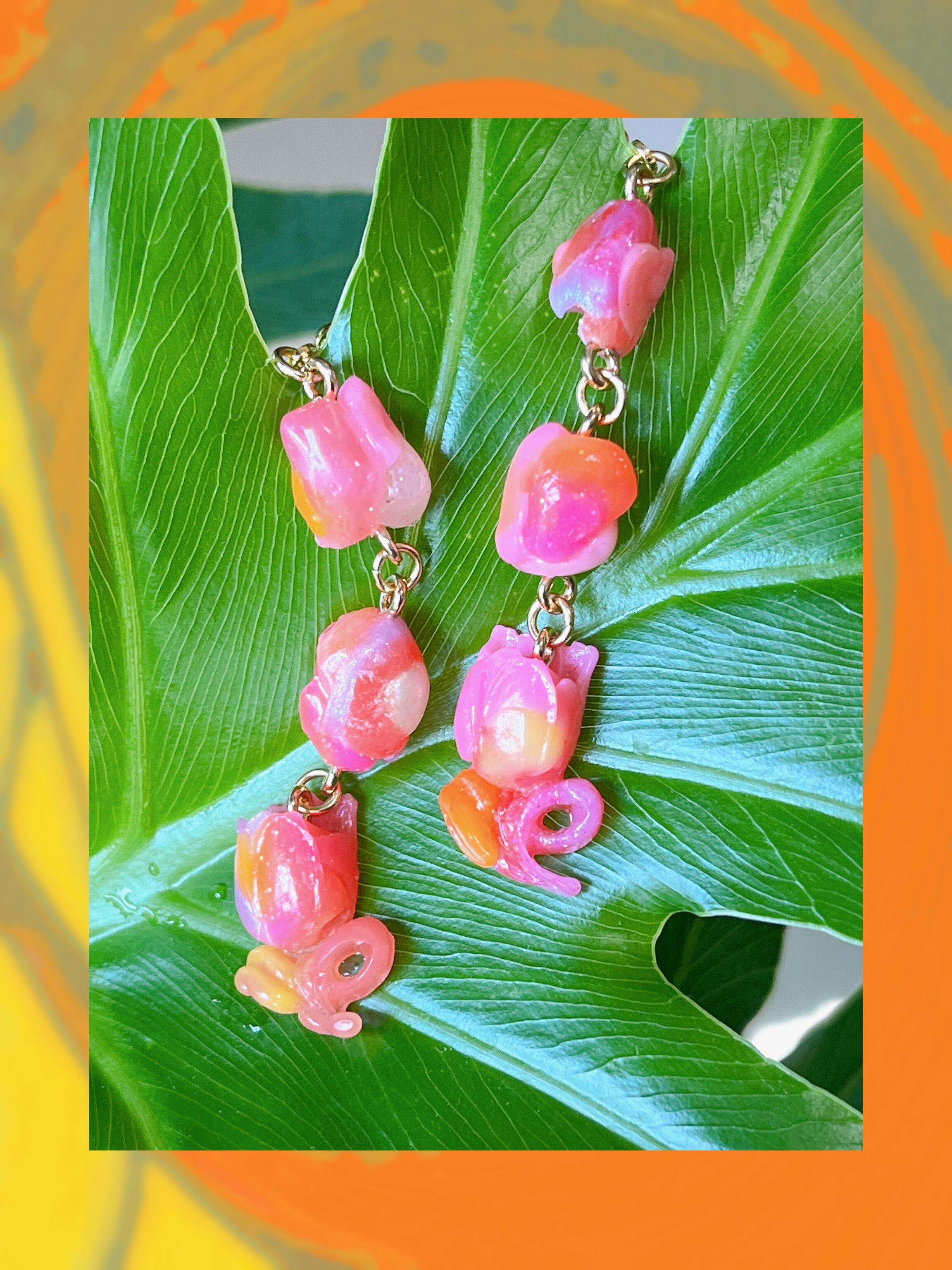 ピンク・オレンジ・パープル系のカラーをたくさん混ぜて作ったオリジナルパーツを使用しています。